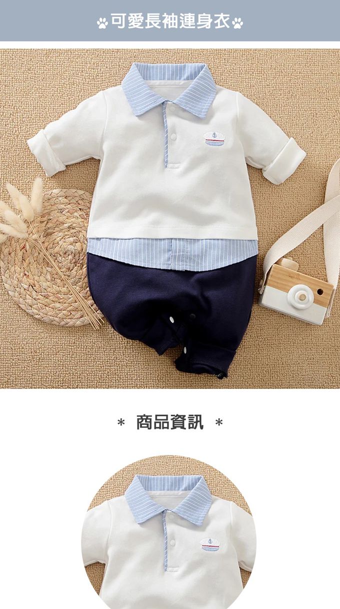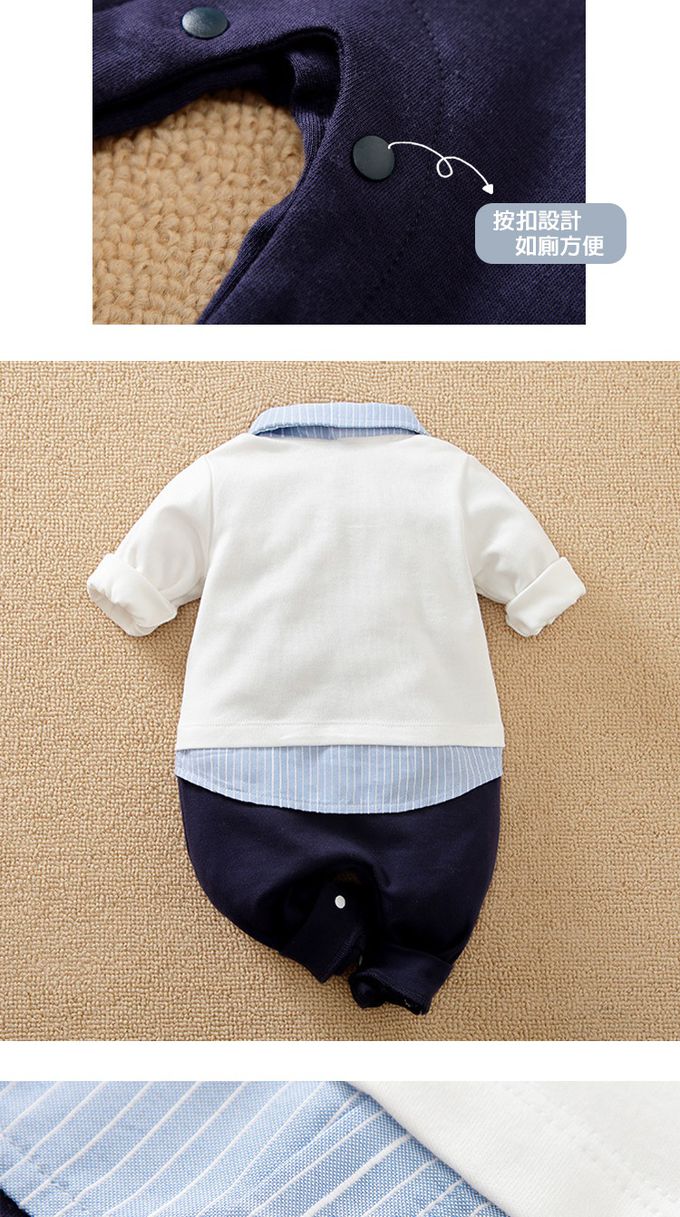 寶寶西裝連身衣 卡其紳士 長袖包屁衣-藏青