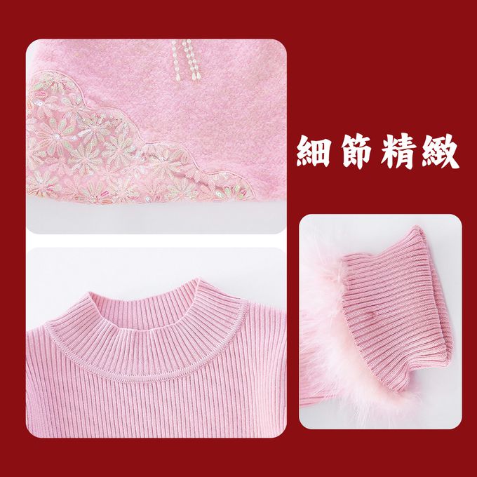 浪漫粉圈絨洋裝配毛毛鑲邊長袖內搭