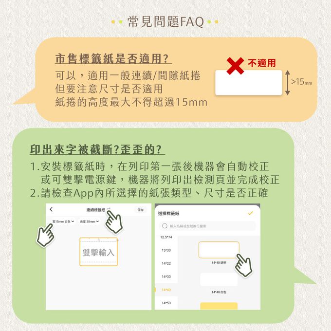 標籤紙捲|支援最大列印高度15mm,兼容連續/間隙紙種類