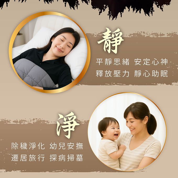配方中的天然草本植物如艾草、藿香、白芷、丁香、紫蘇、香茅、石菖蒲等,皆有助於平衡身心,讓你擺脫壓力和疲勞,享受平靜和舒適的感覺。
