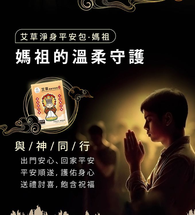 我們特別繪製了「撫慰系媽祖」形象,捨去嚴肅的面容,嘴角揚起溫暖的微笑,手持平安草,象徵將福氣親手交到您手中。這不只是一包沐浴包,更是一個可以隨身攜帶的「行動平安符」。