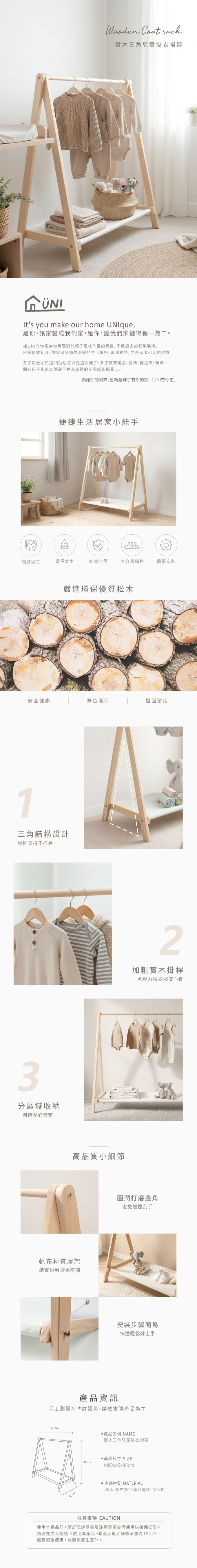 品名:UNI有你宅 實木三角兒童掛衣帽架