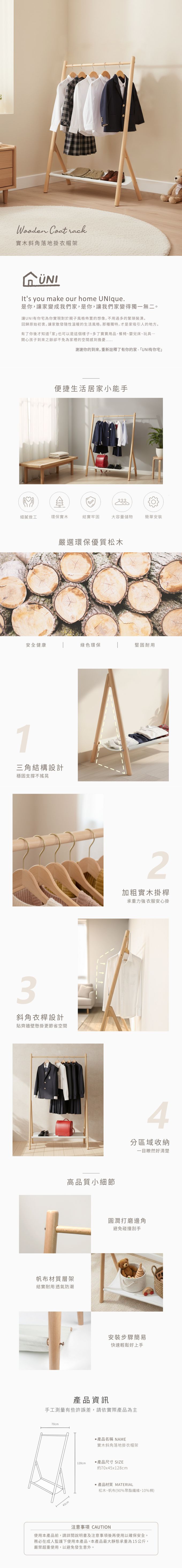 品名:UNI有你宅 實木斜角落地掛衣帽架