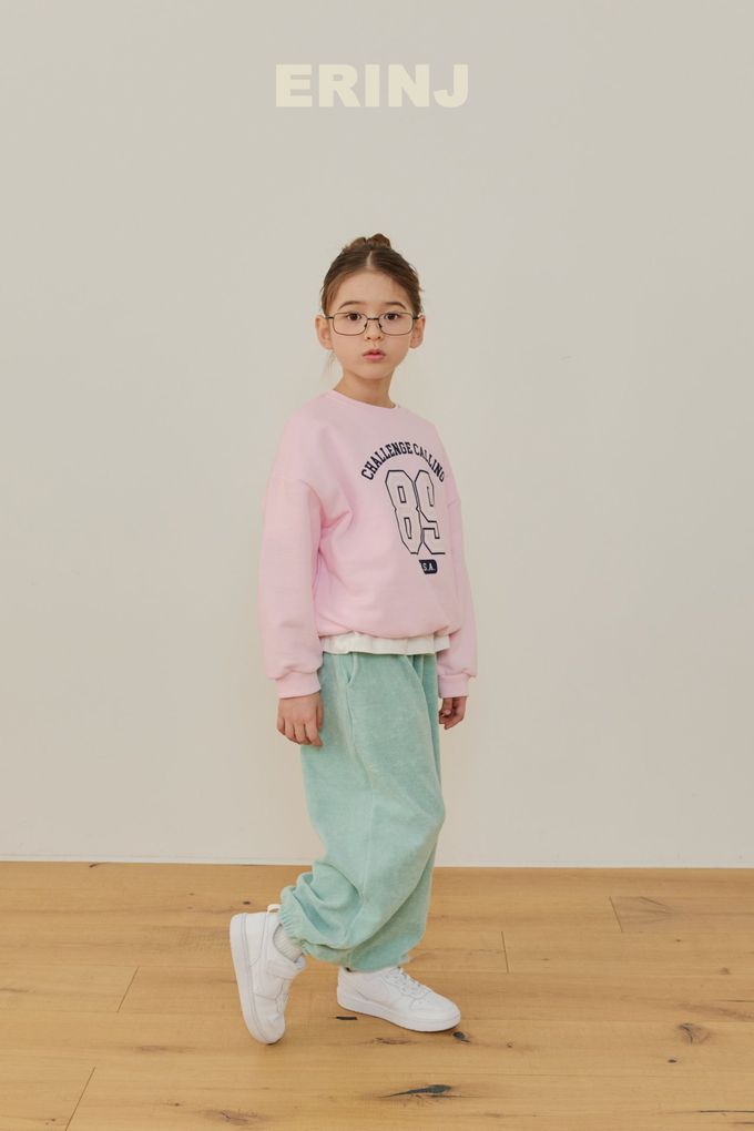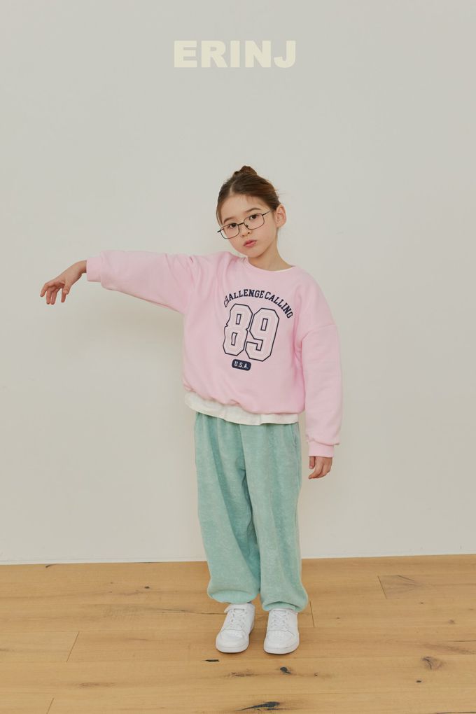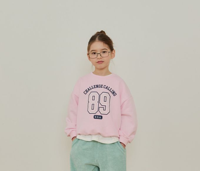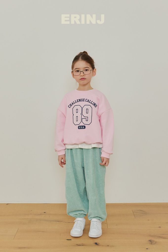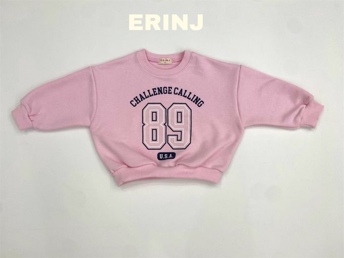 韓國南大門童裝 - ERINJ 美式休閒字印長袖大學T-數字89-粉