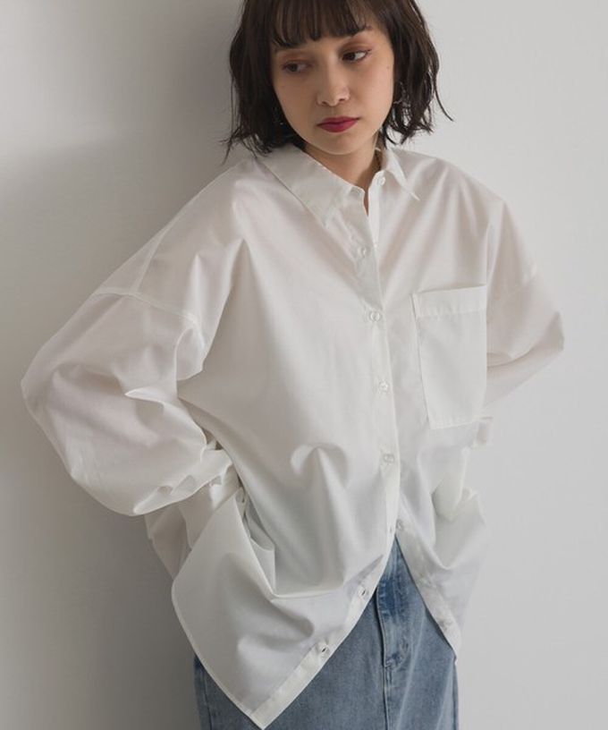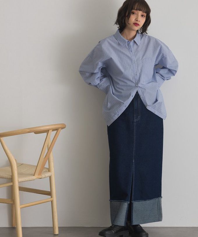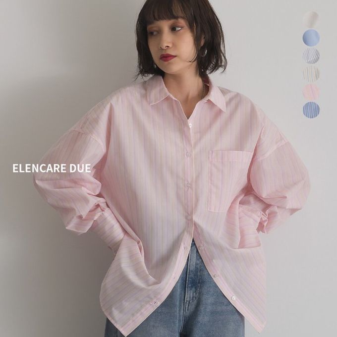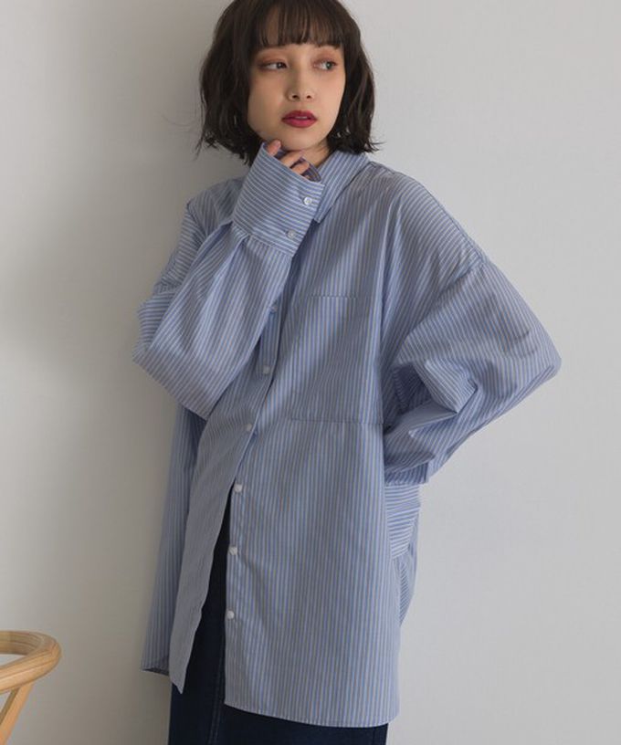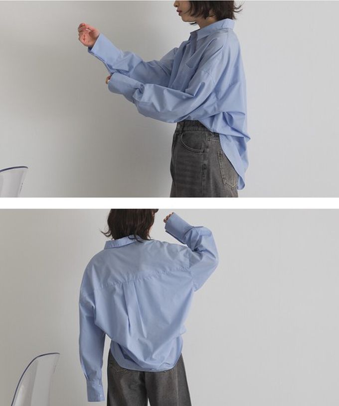 日本 ELENCARE DUE - 男友風寬鬆率性感長袖襯衫-水藍