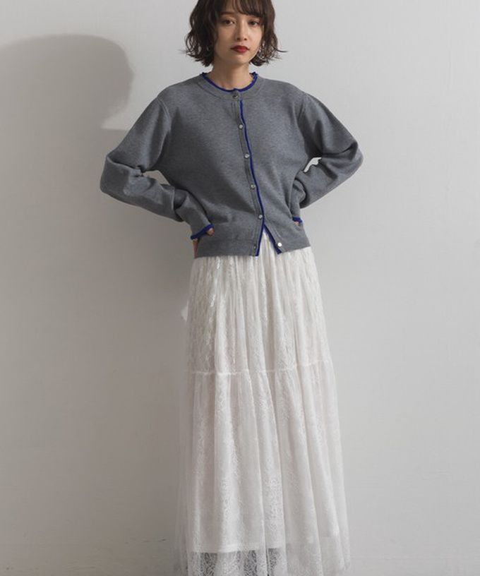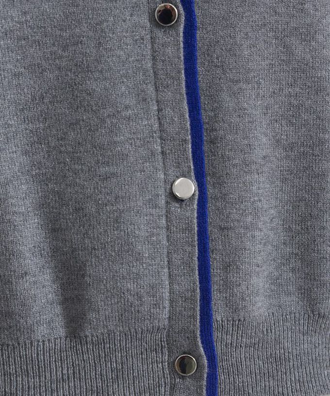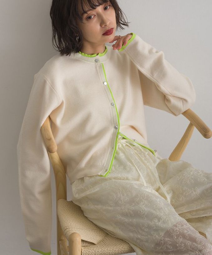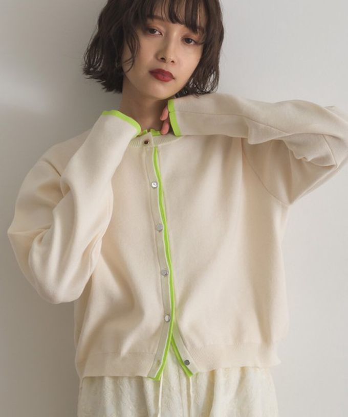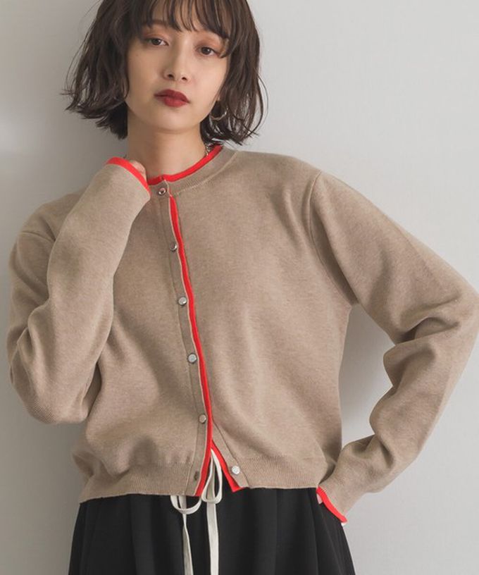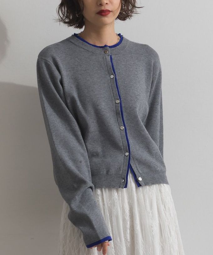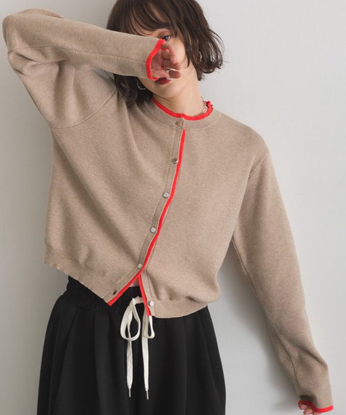日本 ELENCARE DUE - 明亮配色滾邊短版針織開襟衫-黑x薰衣草