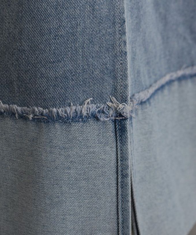 • 品名:10oz抽鬚摺邊俐落前開叉牛仔長裙