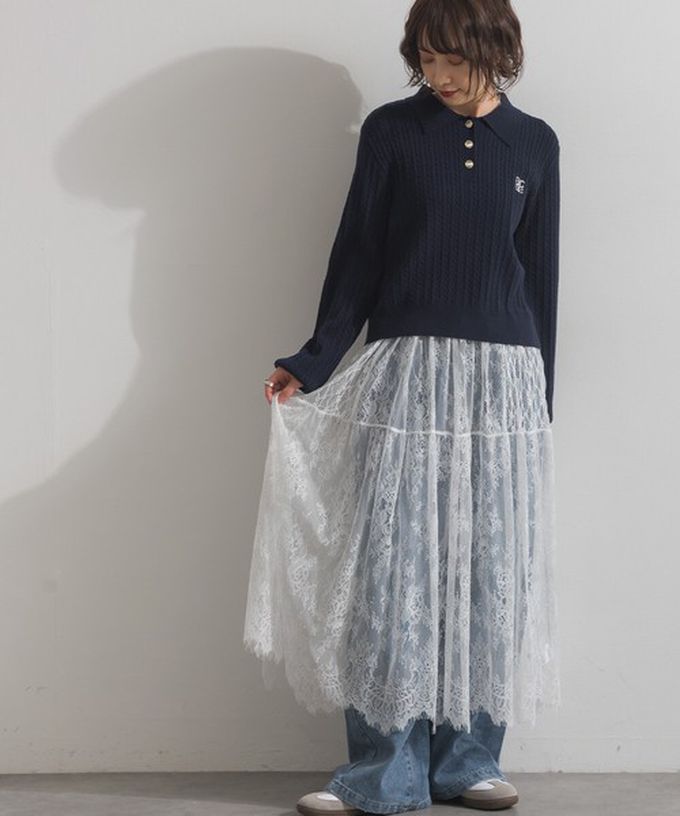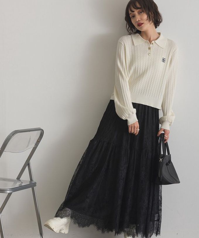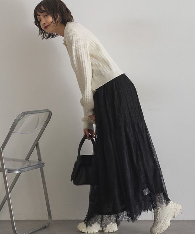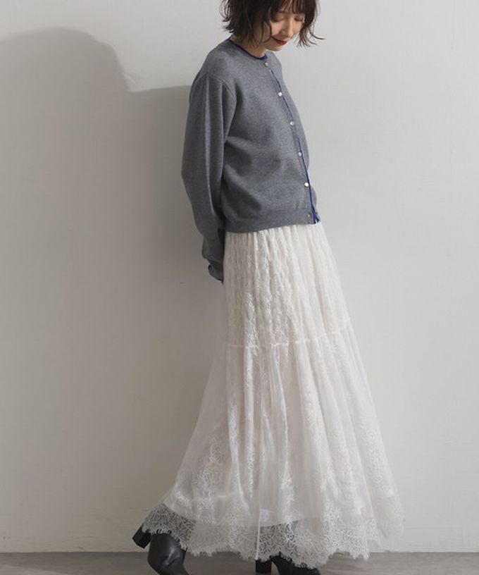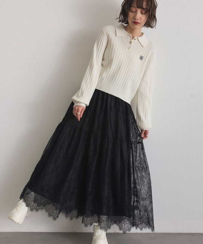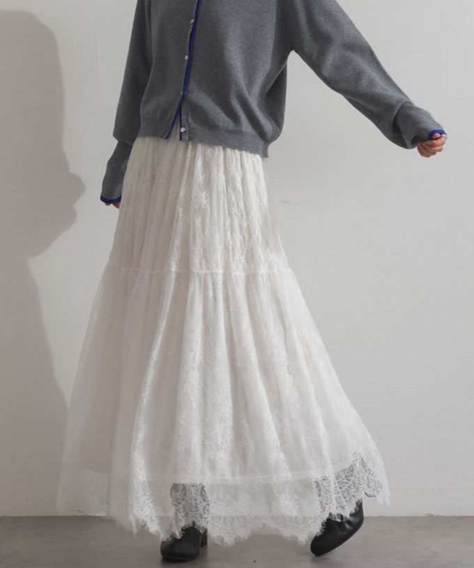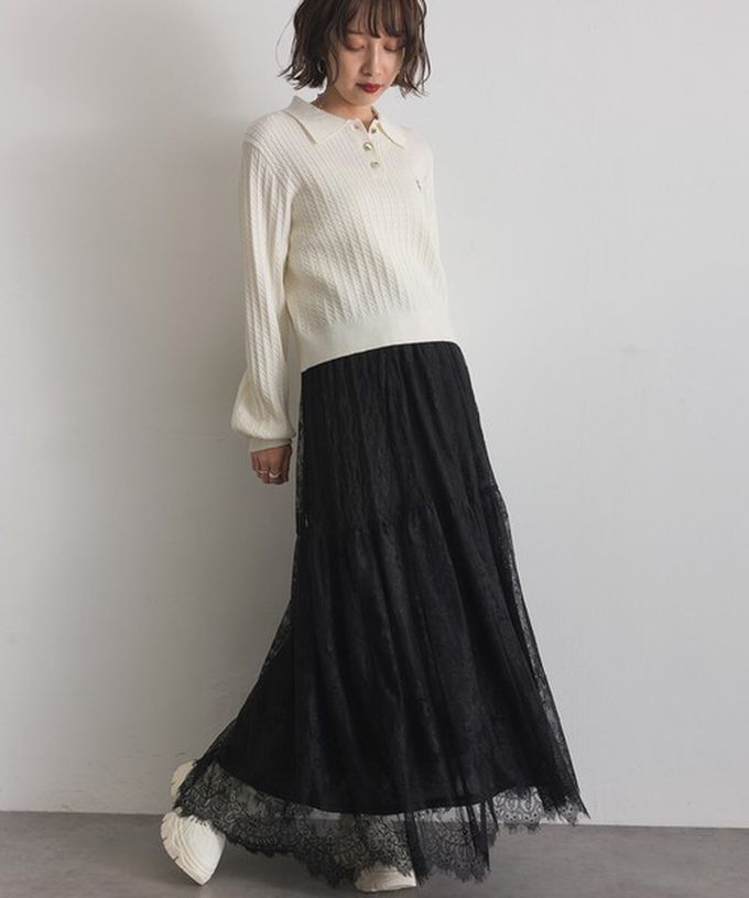日本 ELENCARE DUE - 奢華睫毛蕾絲飄逸長裙(2件式)-白