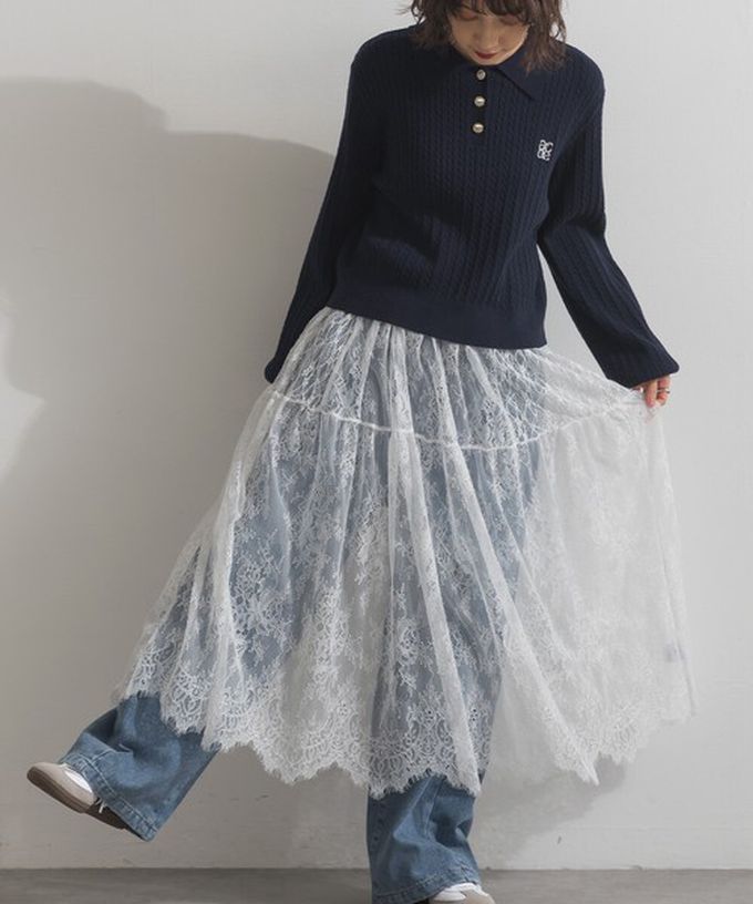 • 成分:主體蕾絲: 尼龍 100% 配件蕾絲(別布): 尼龍 92%、彈性纖維 8% 腰部配件布料(別布): 聚酯纖維 100% 內層襯裙(附屬): 聚酯纖維 100%