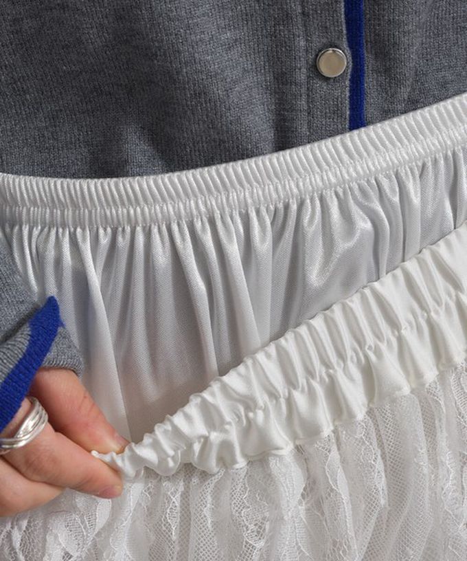 • 成分:主體蕾絲: 尼龍 100% 配件蕾絲(別布): 尼龍 92%、彈性纖維 8% 腰部配件布料(別布): 聚酯纖維 100% 內層襯裙(附屬): 聚酯纖維 100%