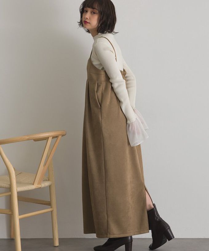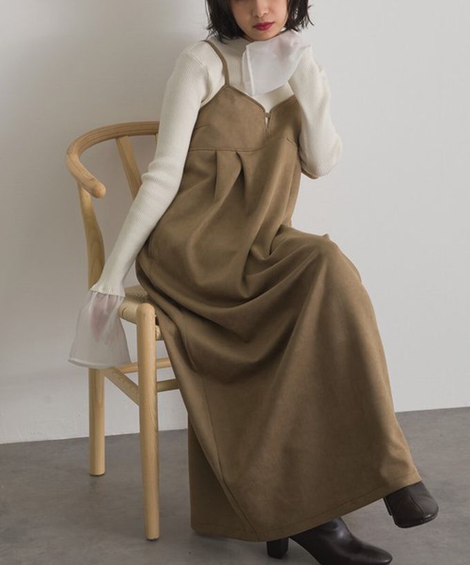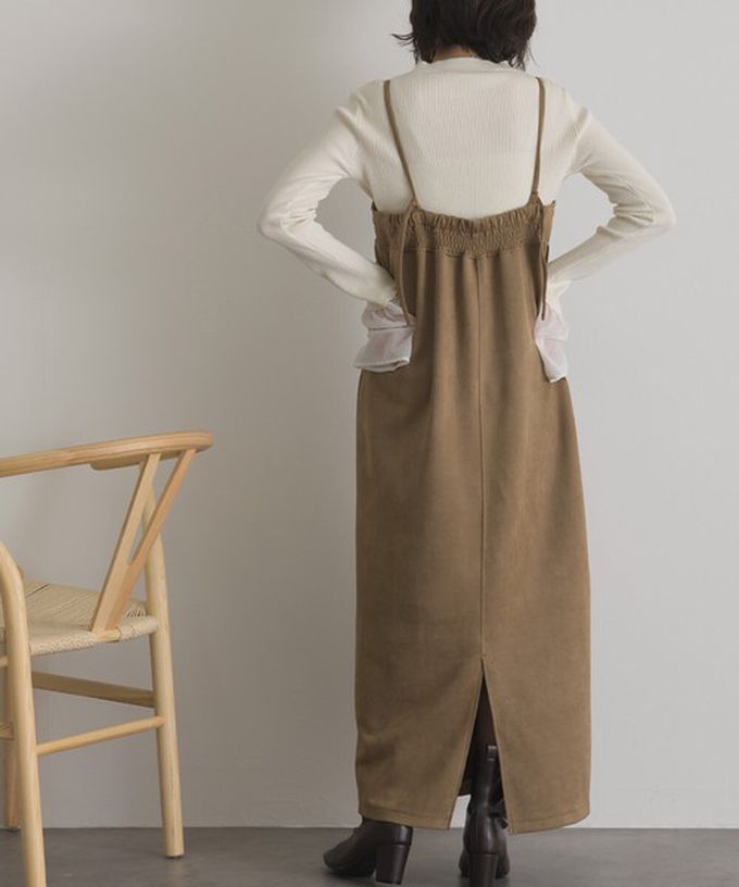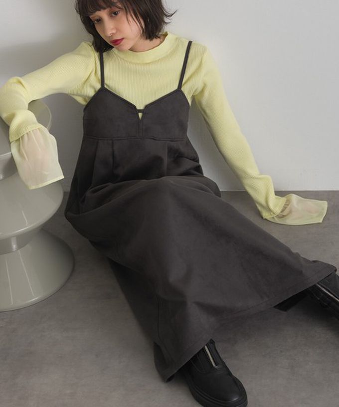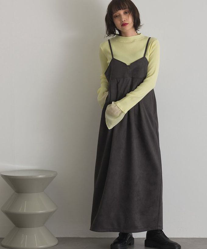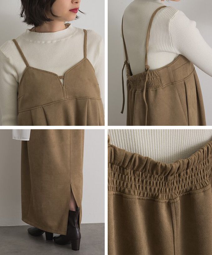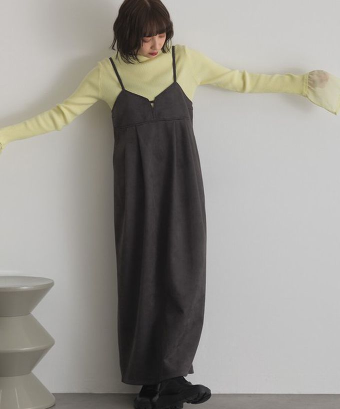 日本 ELENCARE DUE - 柔美垂墜感優雅絨面吊帶洋裝-炭灰