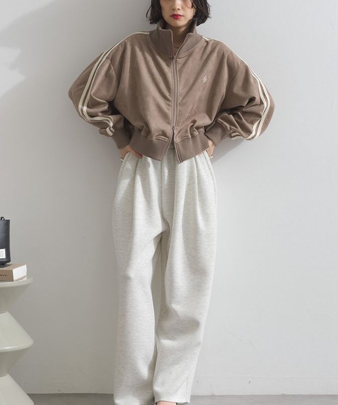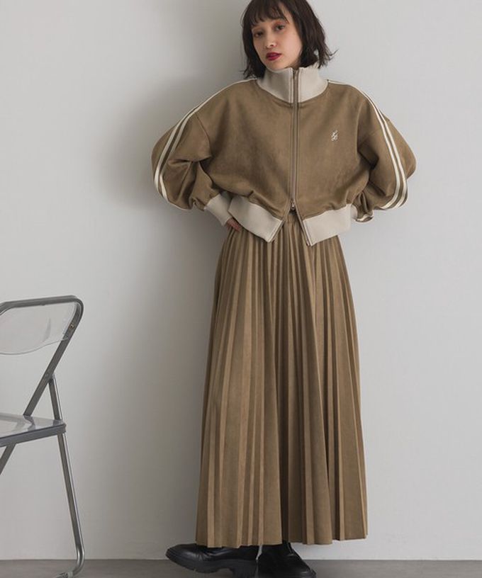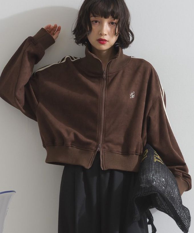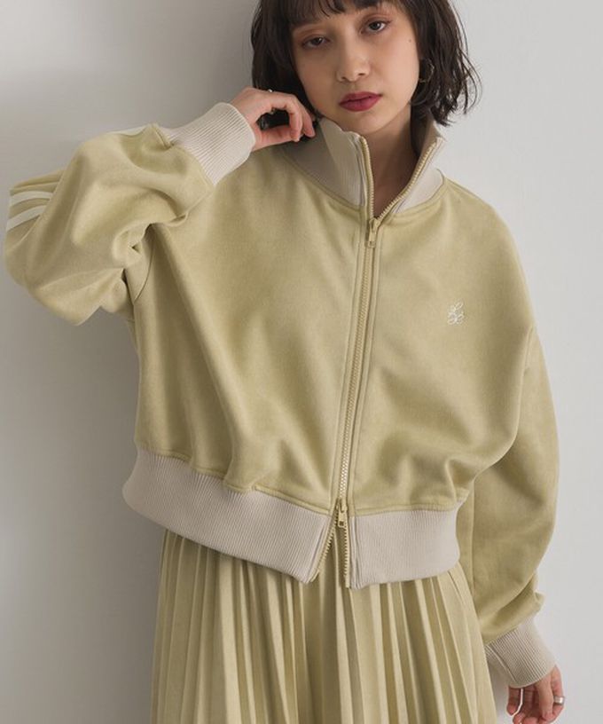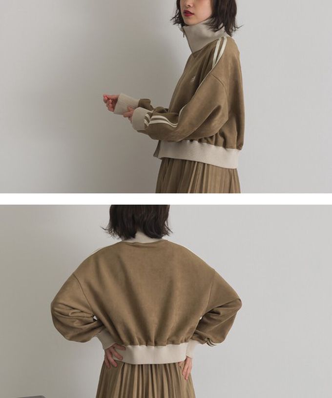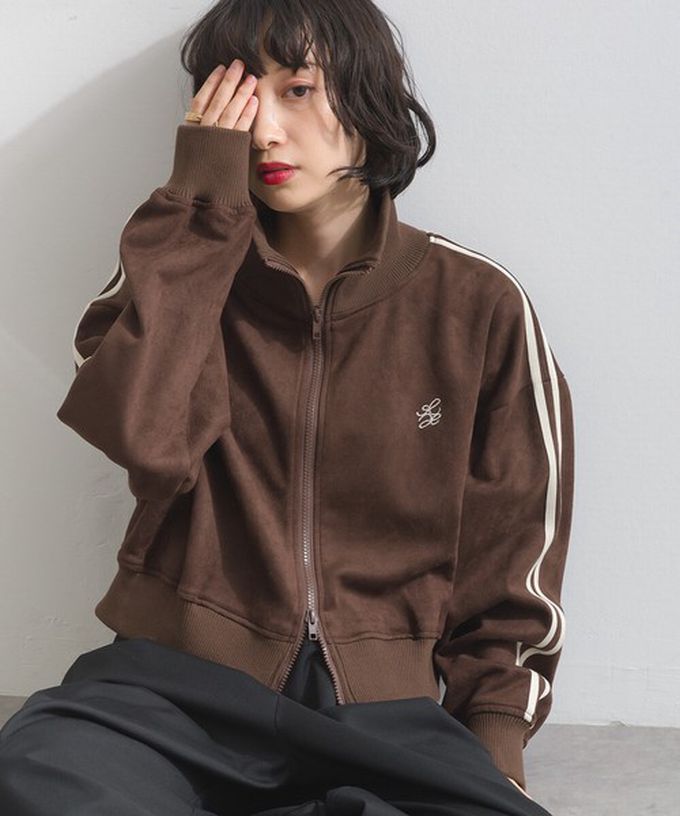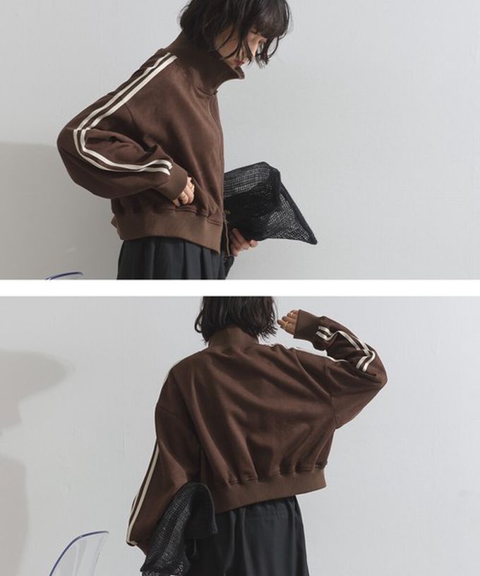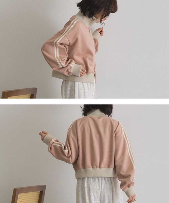 日本 ELENCARE DUE - 麂皮短絨休閒配色運動風夾克-煙燻黃