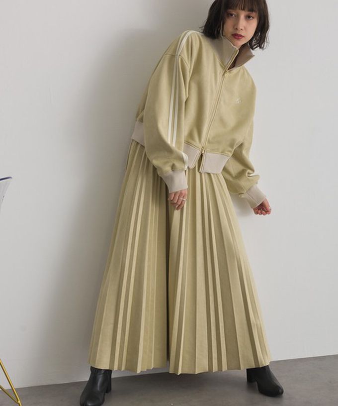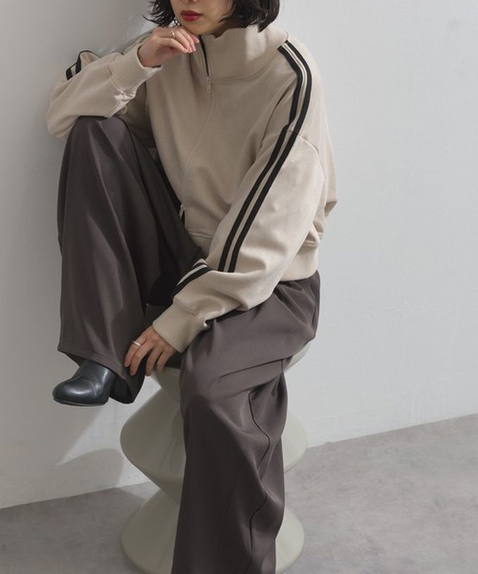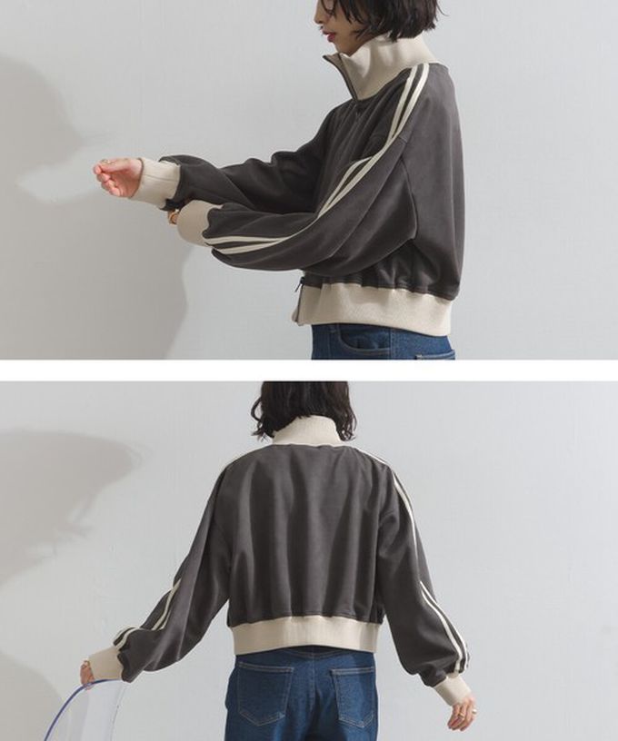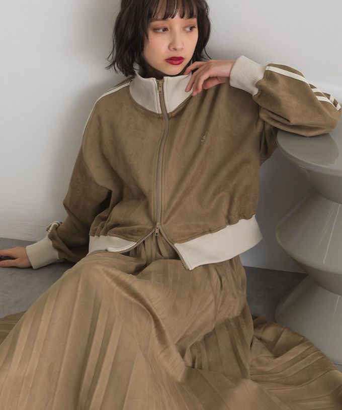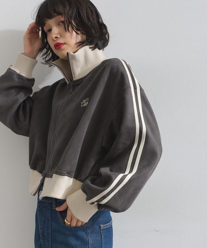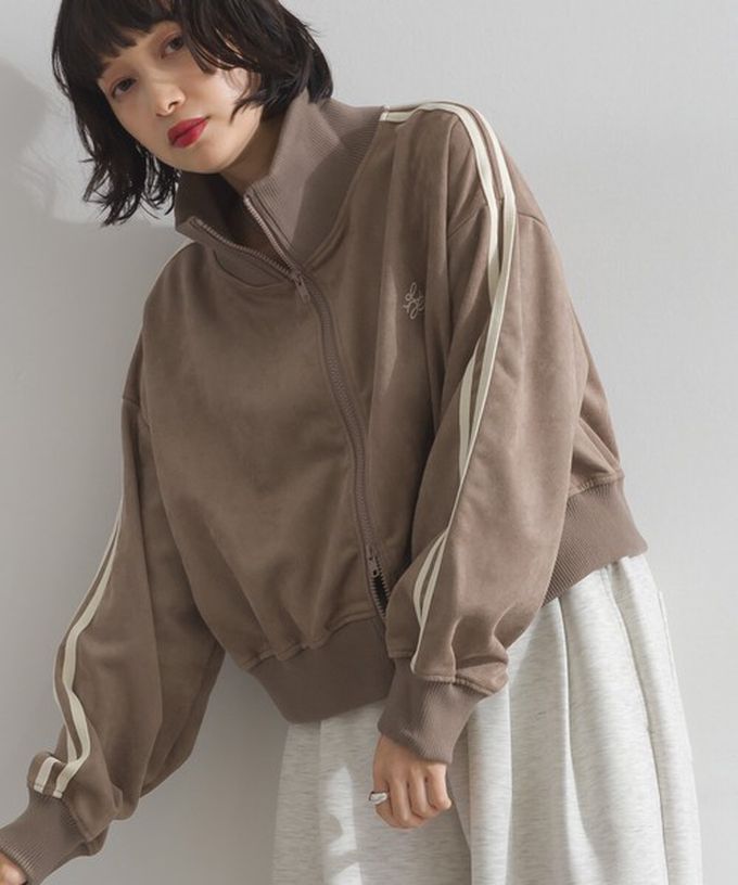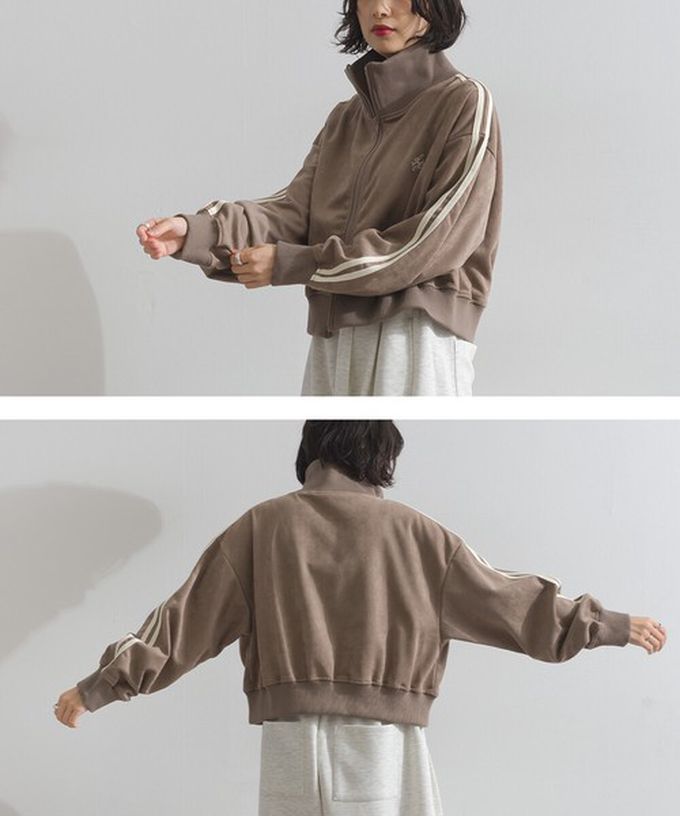 日本 ELENCARE DUE - 麂皮短絨休閒配色運動風夾克-卡其棕