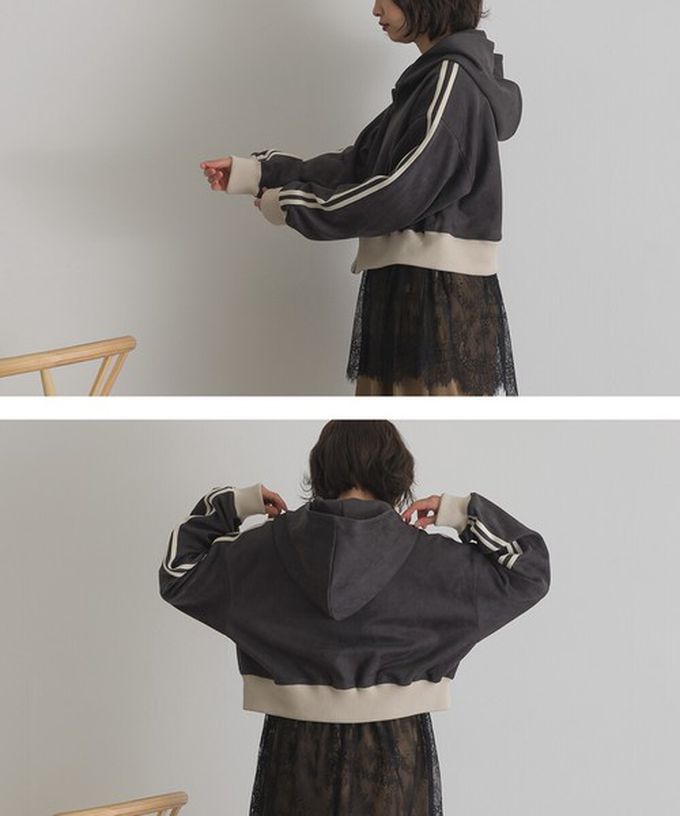 • 品名:麂皮俐落雙拉鍊短版連帽外套