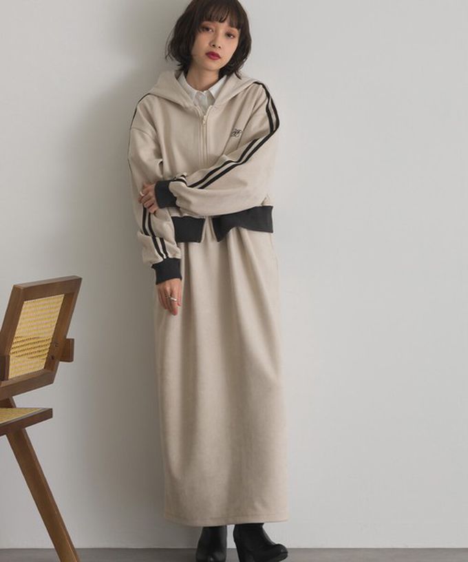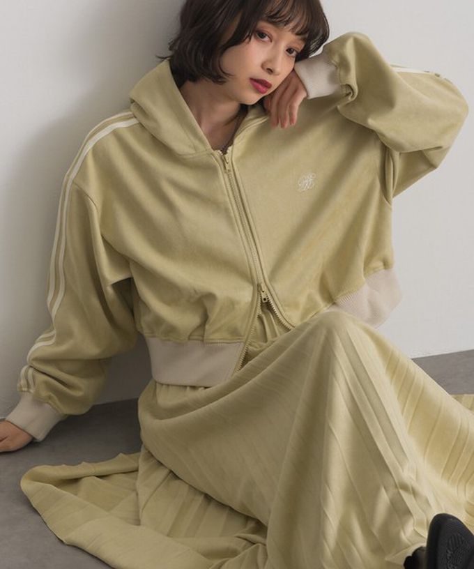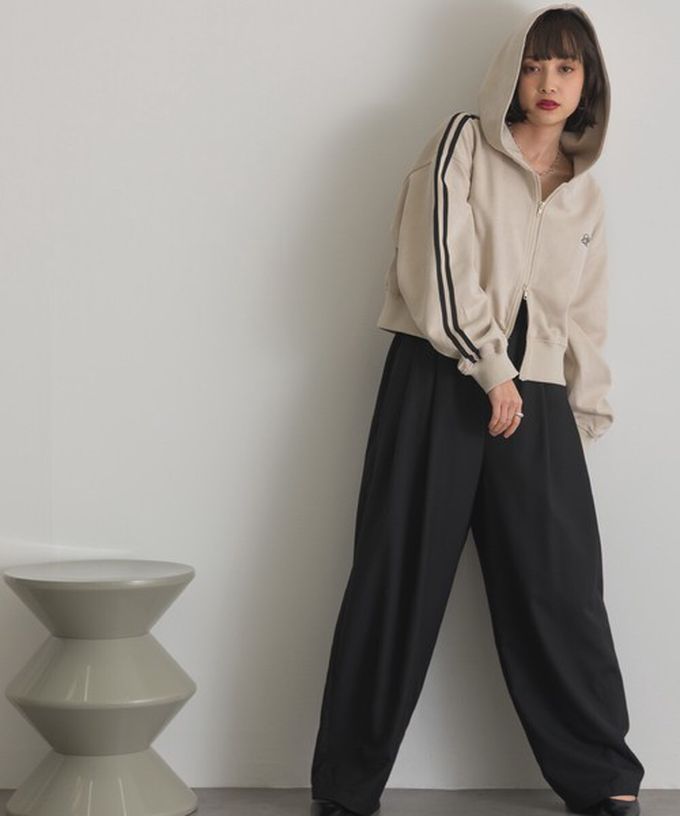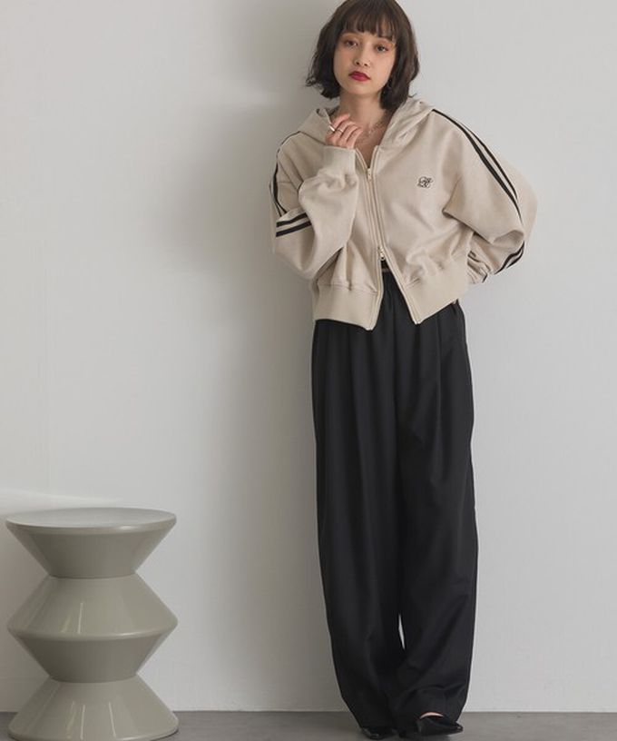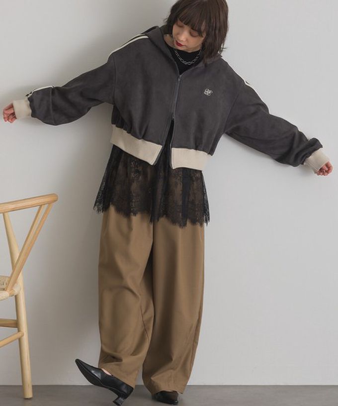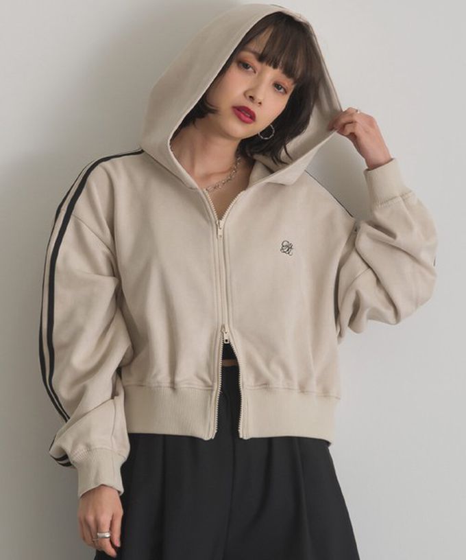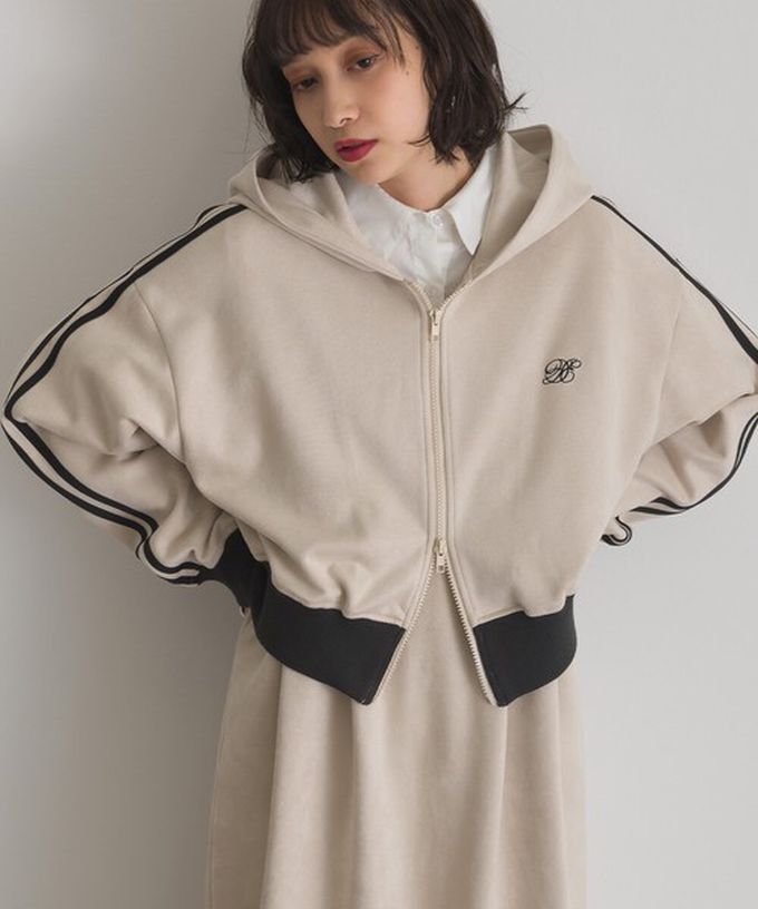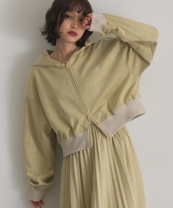日本 ELENCARE DUE - 麂皮俐落雙拉鍊短版連帽外套-象牙米