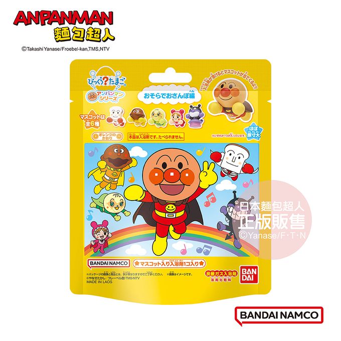 入浴球本身共有3種不同角色的大頭造型(麵包超人/細菌人/紅精靈),採隨機出貨。