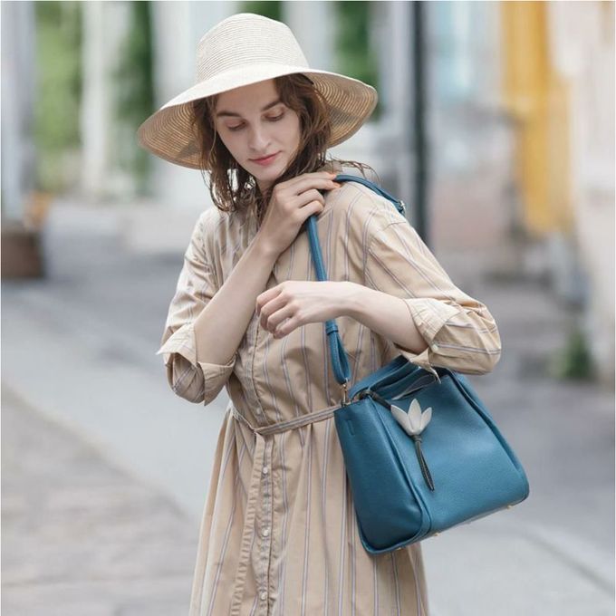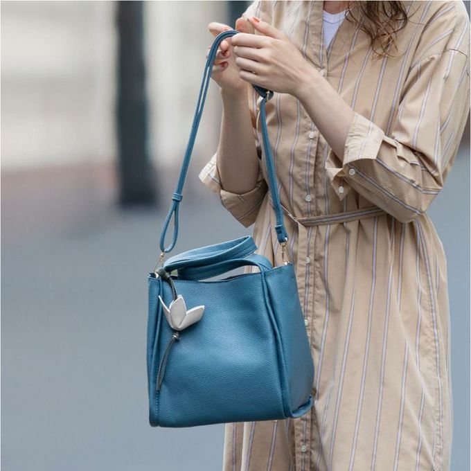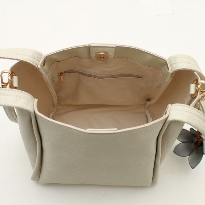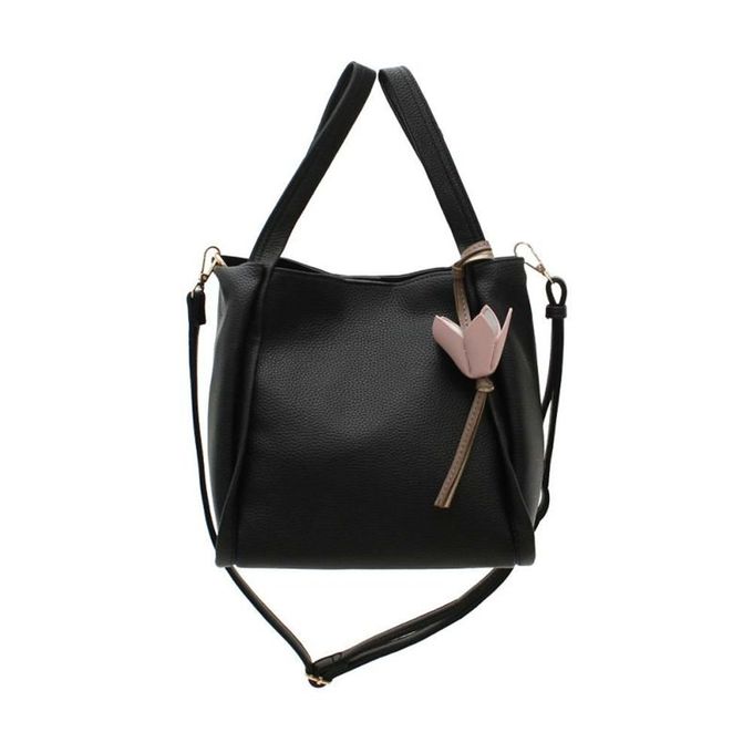品名:2way柔美圓潤手提/肩背包(附花朵吊飾)
