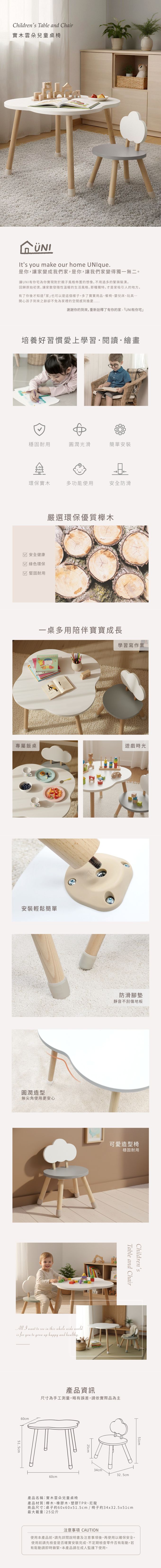 品名:UNI有你宅 實木雲朵兒童桌椅組