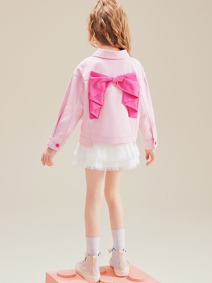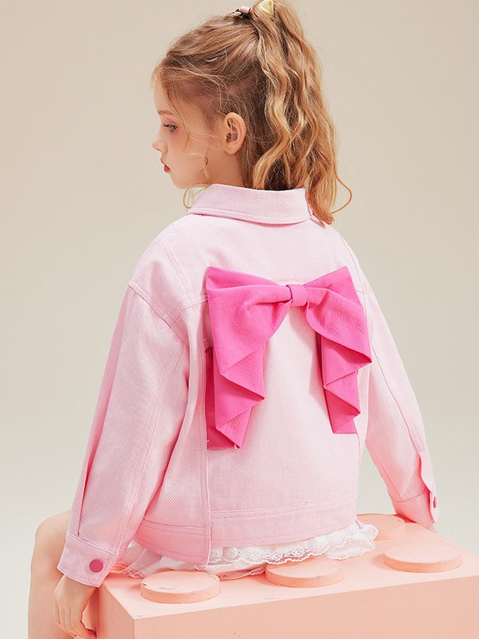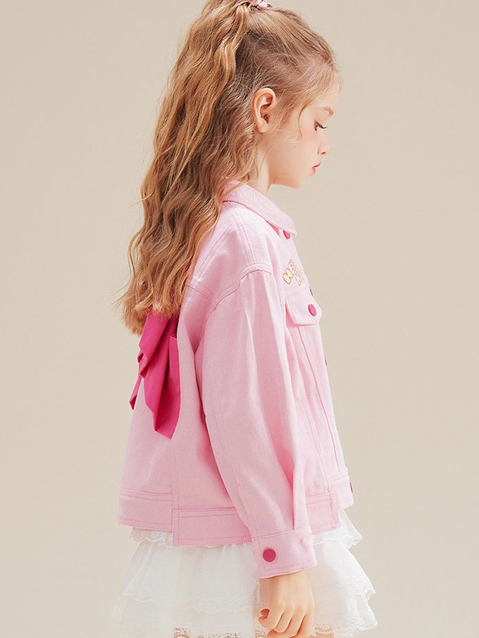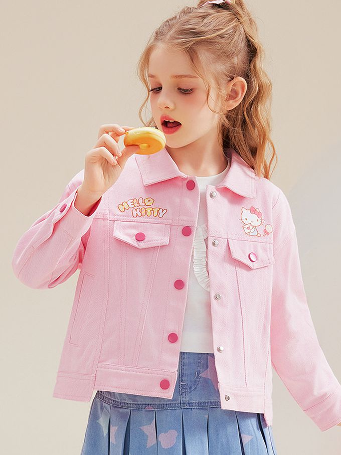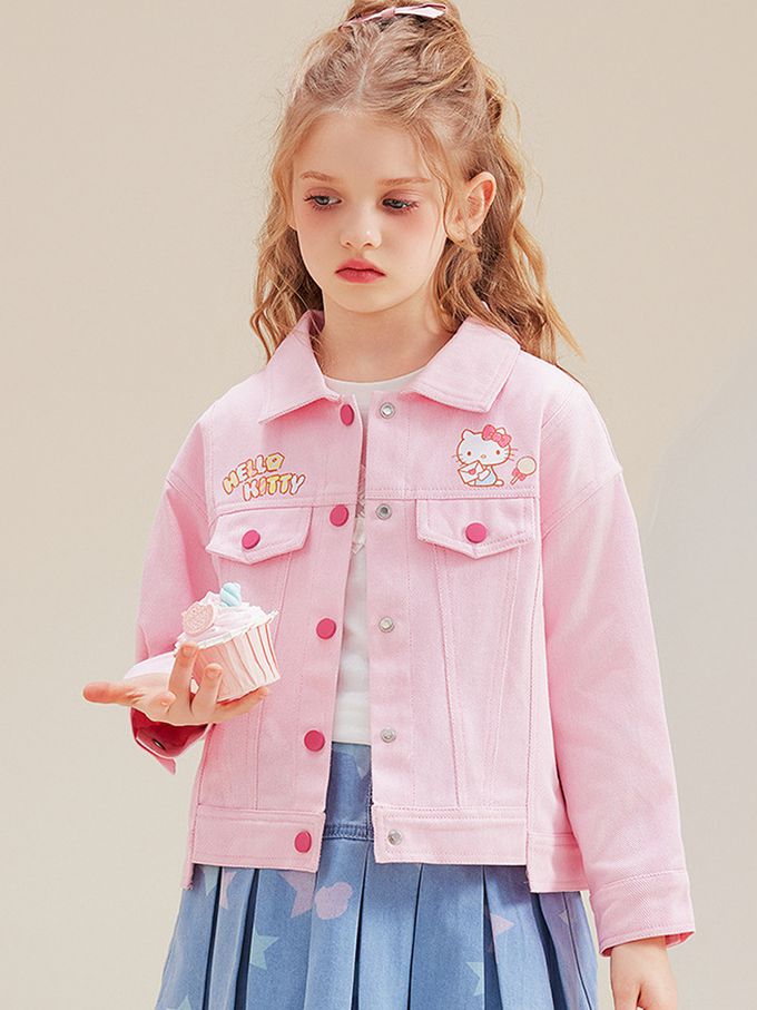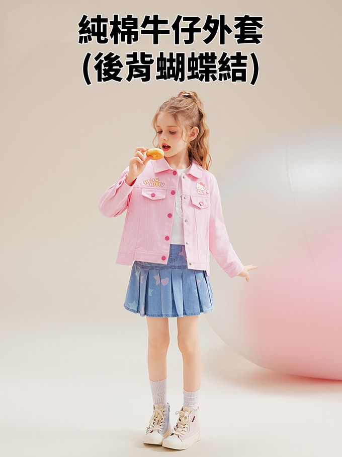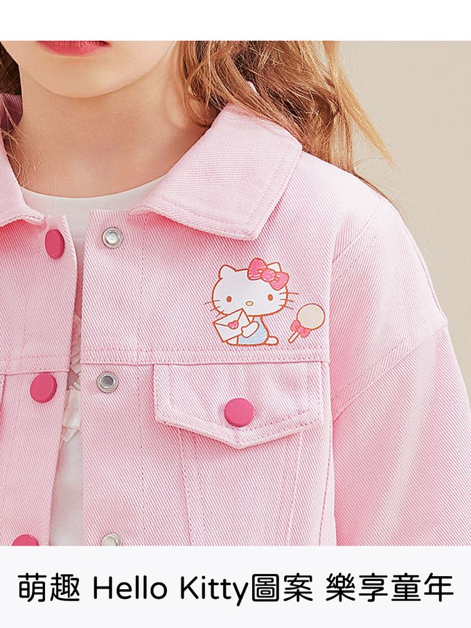 純棉牛仔外套(後背蝴蝶結)-卡通人物Hello Kitty-粉色