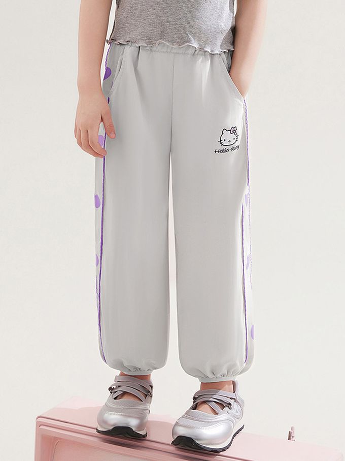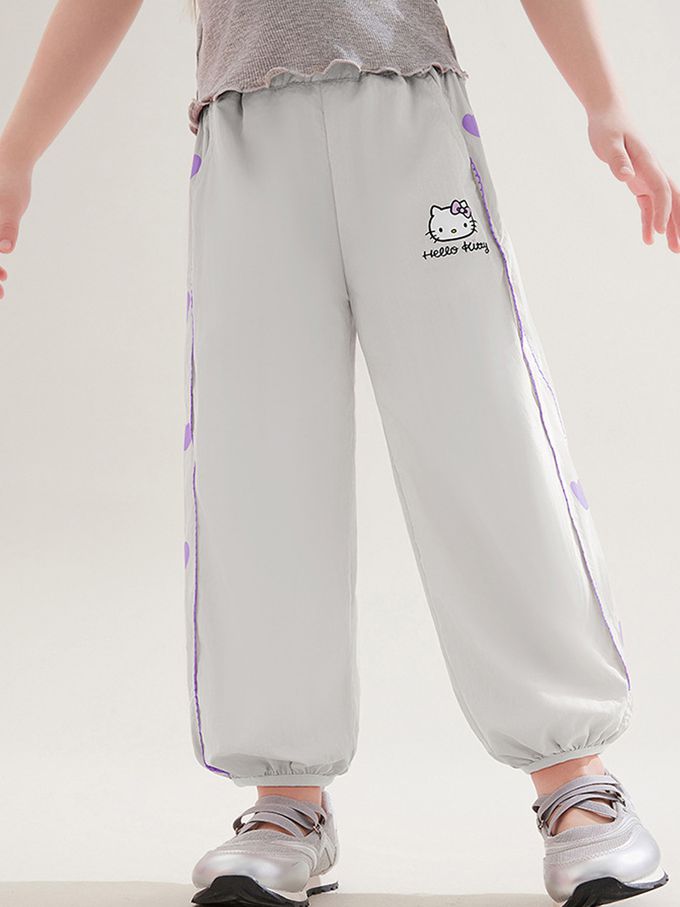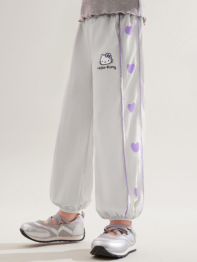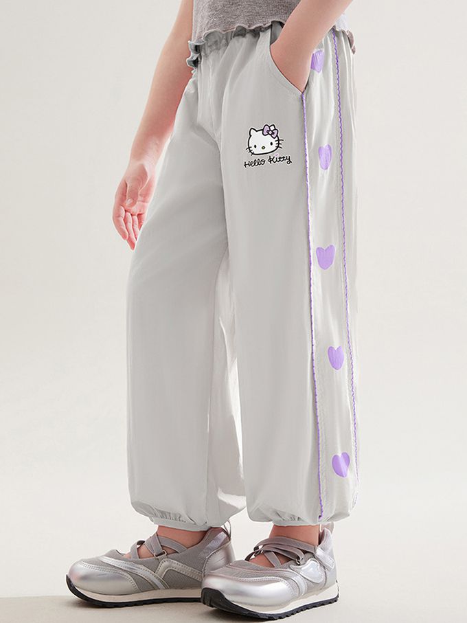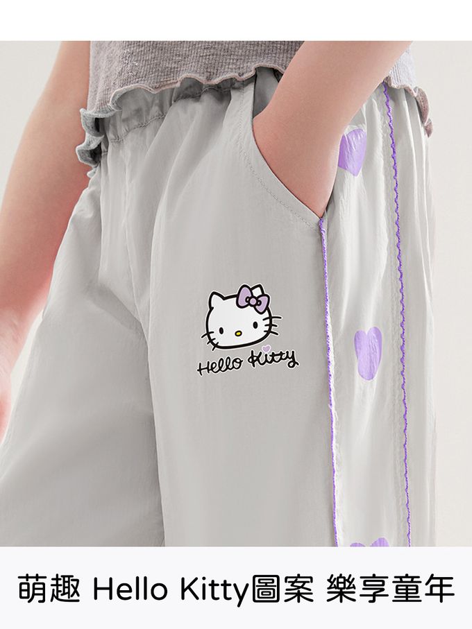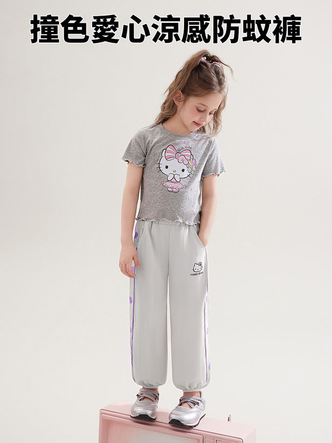 撞色愛心涼感防蚊褲-卡通人物Hello Kitty-灰色