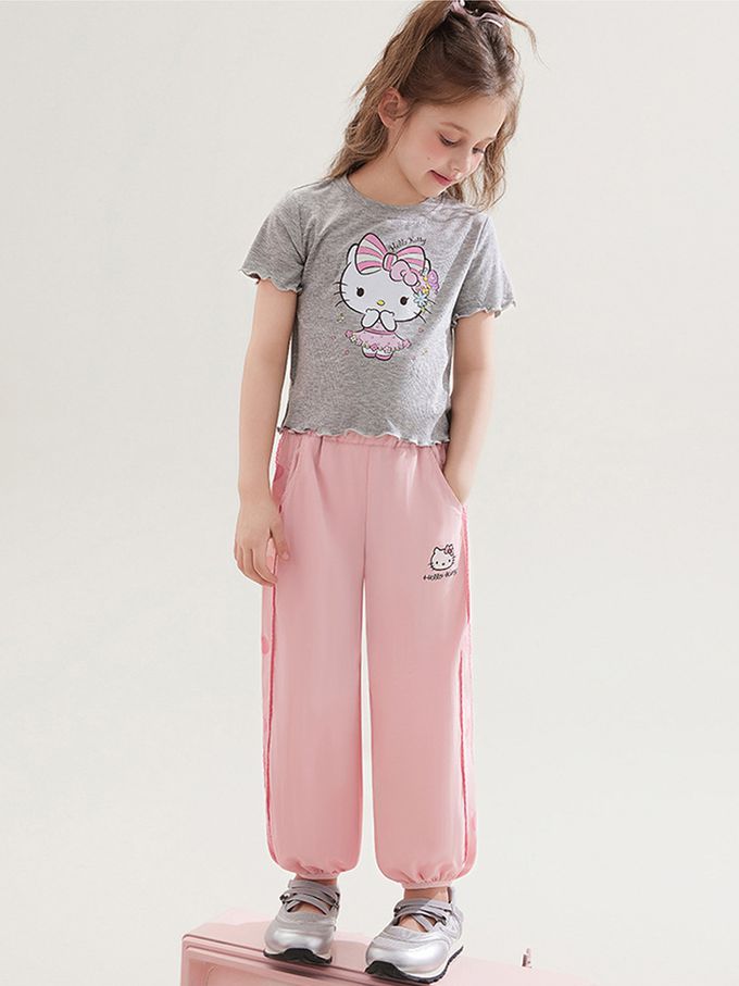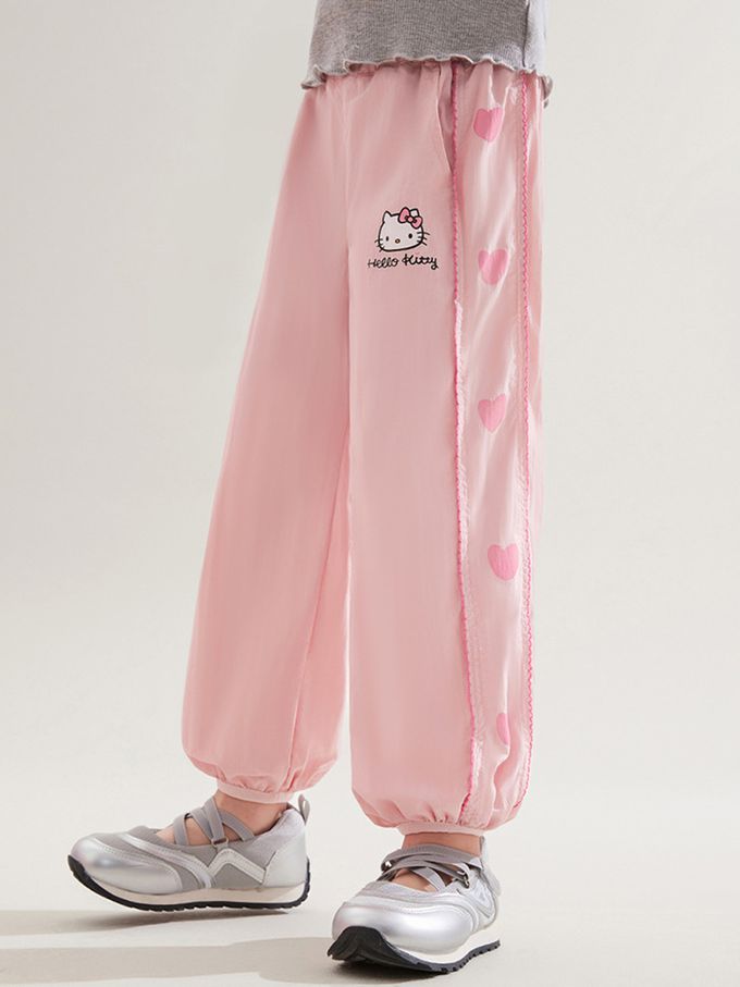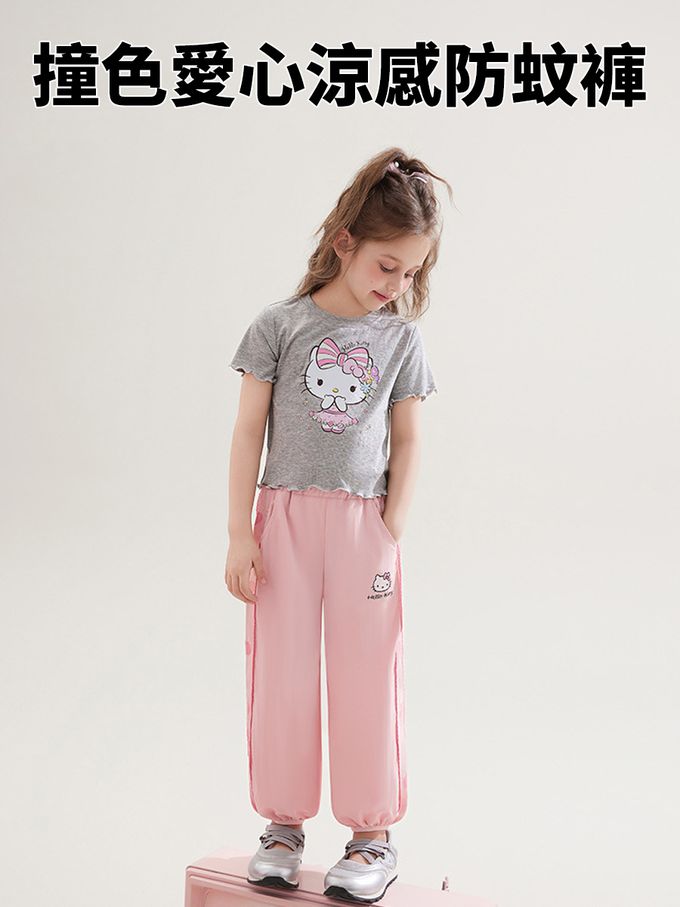 撞色愛心涼感防蚊褲-卡通人物Hello Kitty-粉色