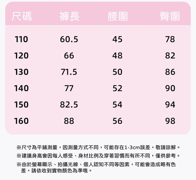110cm、120cm、130cm、140cm、150cm、160cm