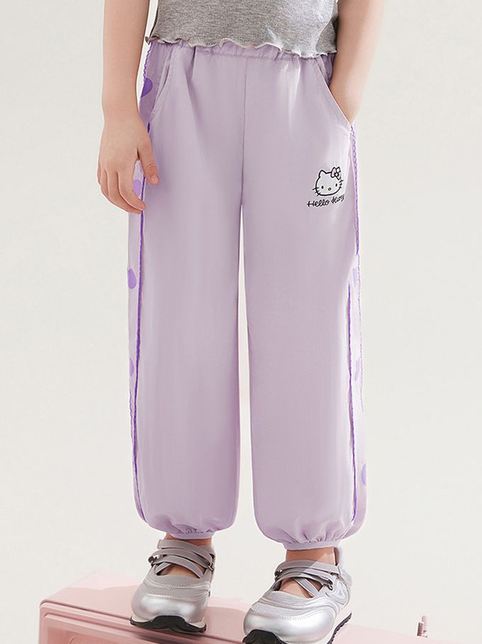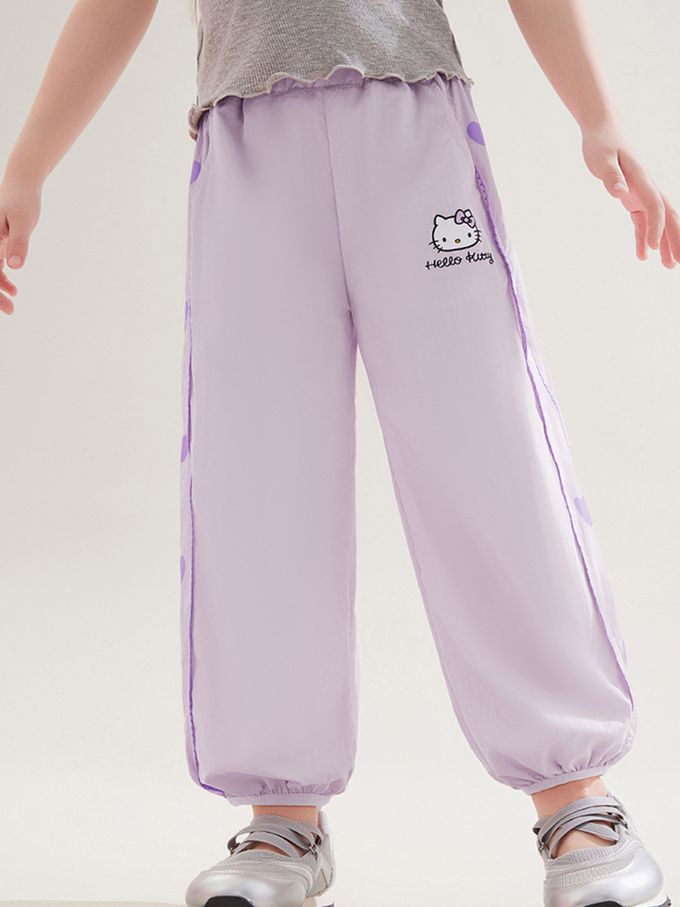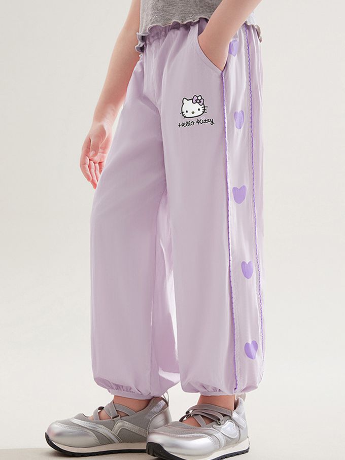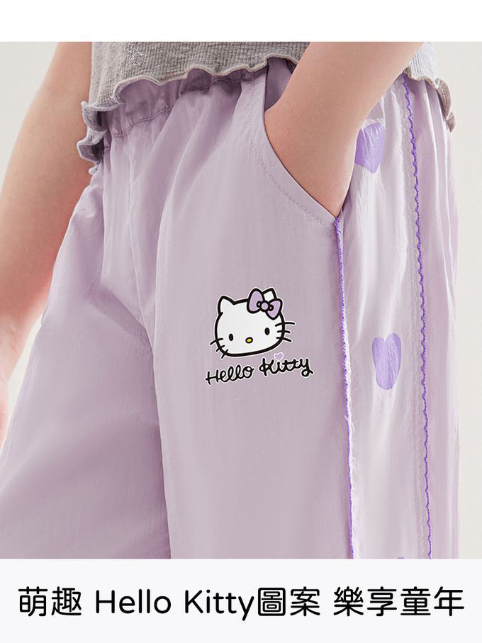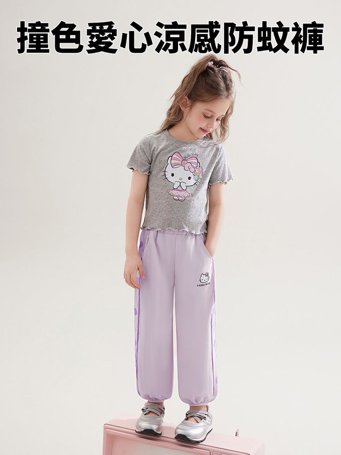 人氣卡通 - 撞色愛心涼感防蚊褲-卡通人物Hello Kitty-紫色
