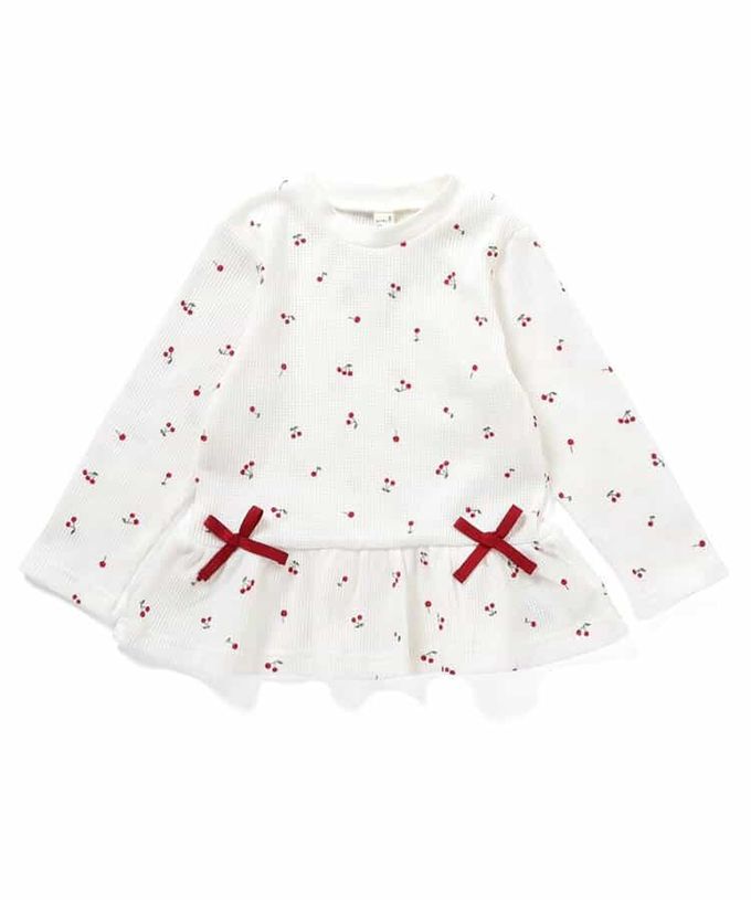 日本 apres les cours - 可愛荷葉下擺羅紋長袖上衣-櫻桃-白