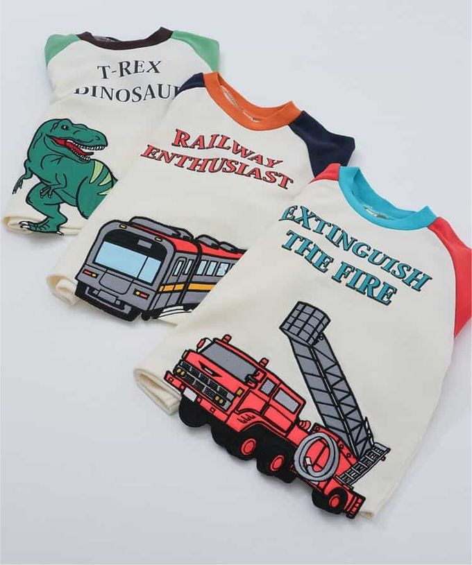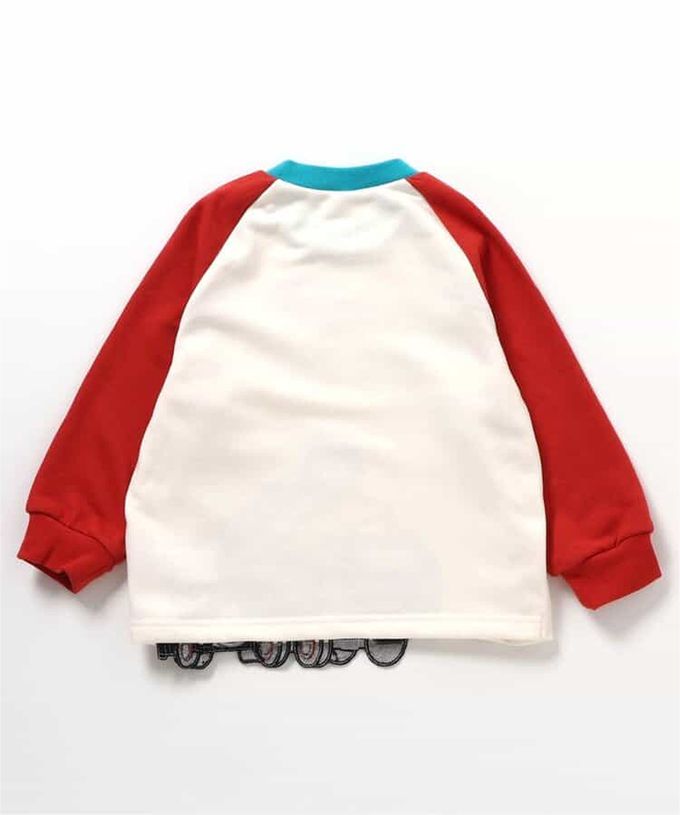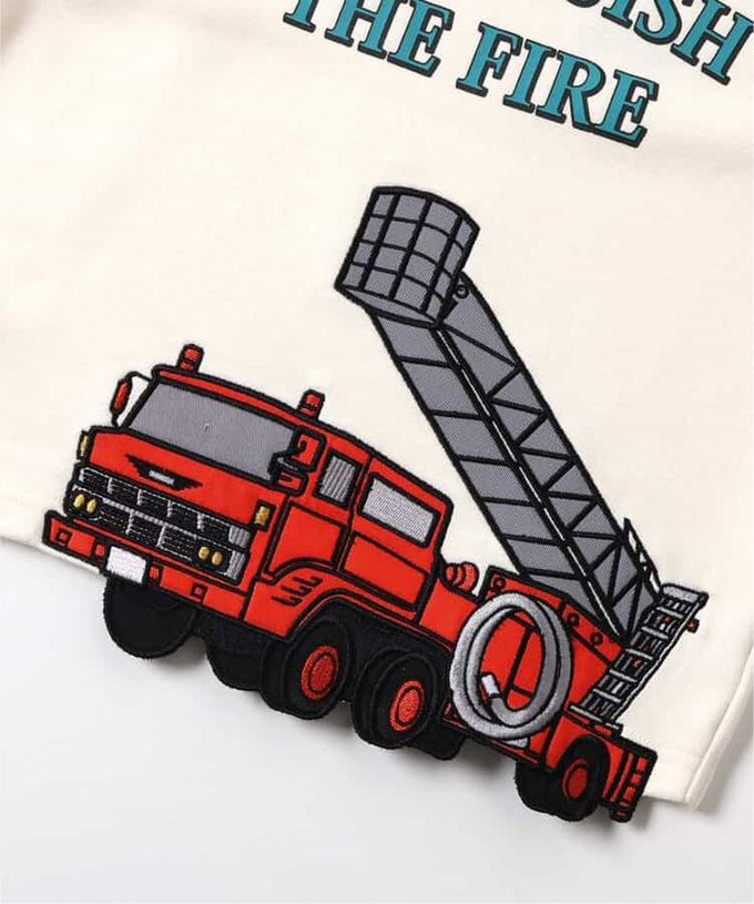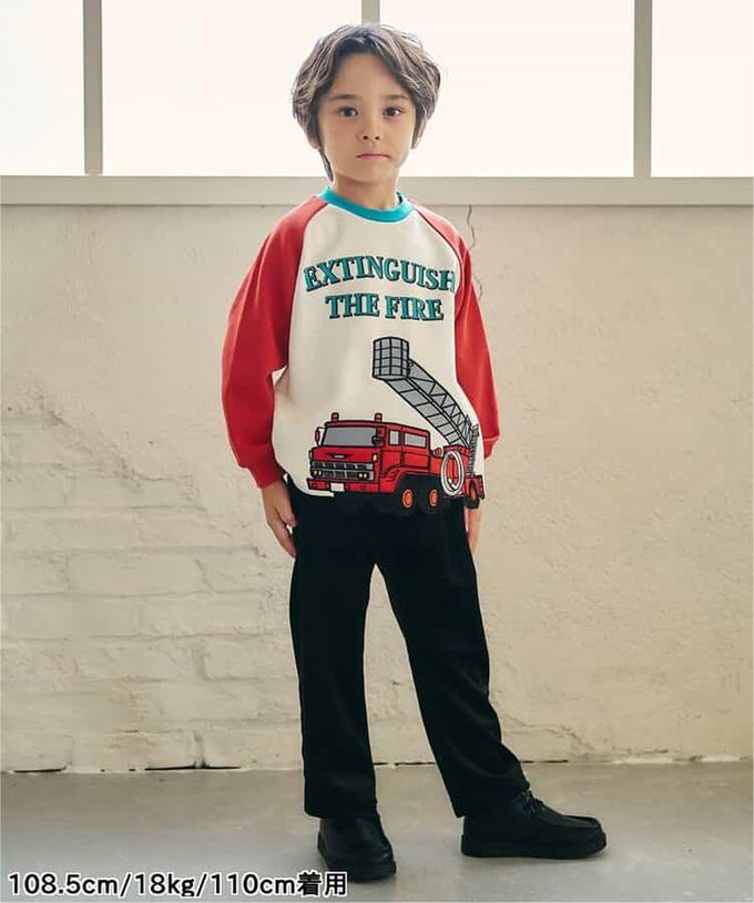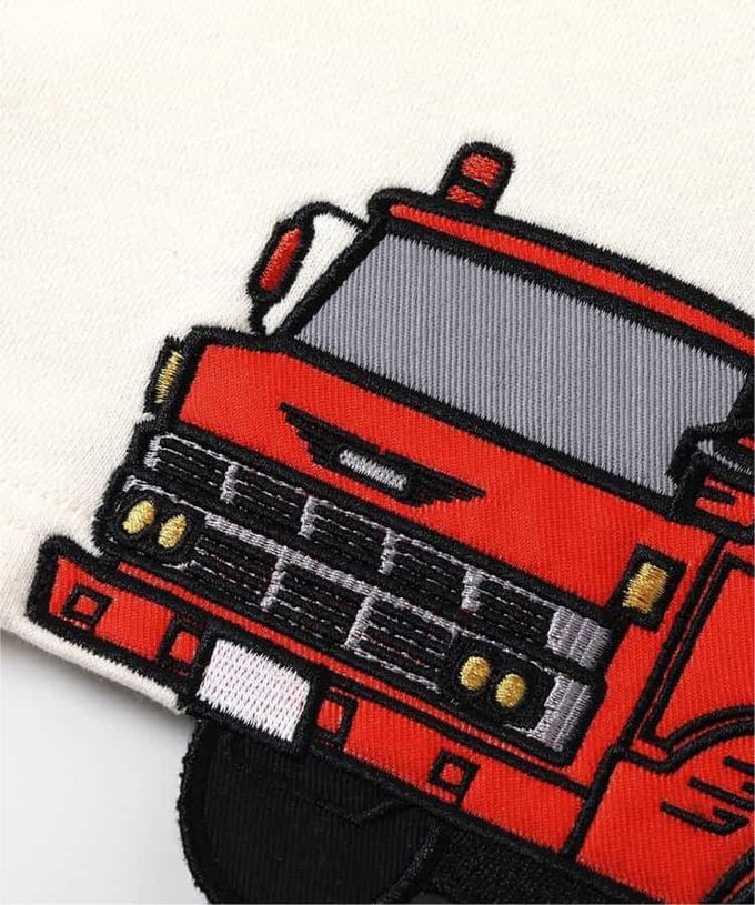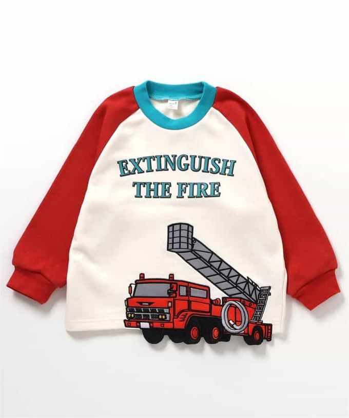 日本 apres les cours - 男孩最愛醒目印花裏毛長袖上衣-消防車-紅