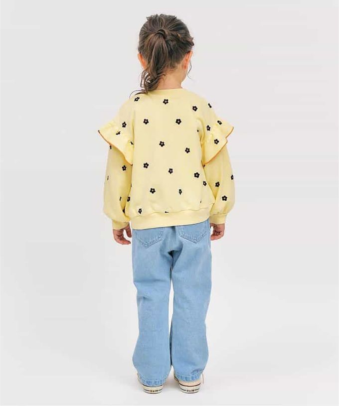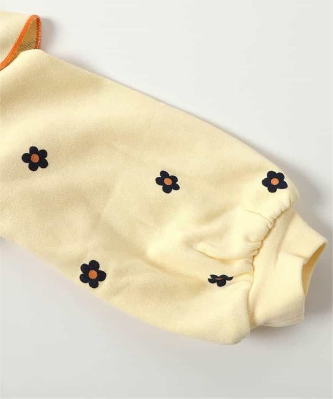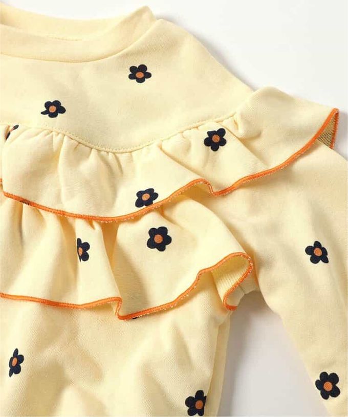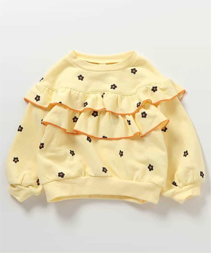 日本 apres les cours - 甜美摺邊滿版花朵裏毛長袖上衣-奶油黃