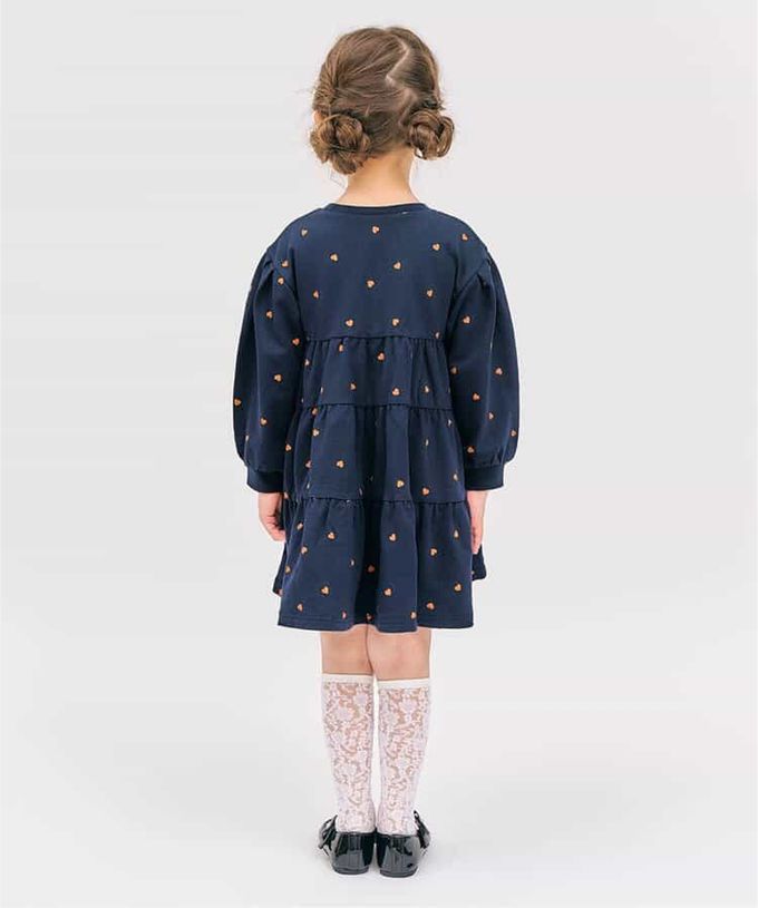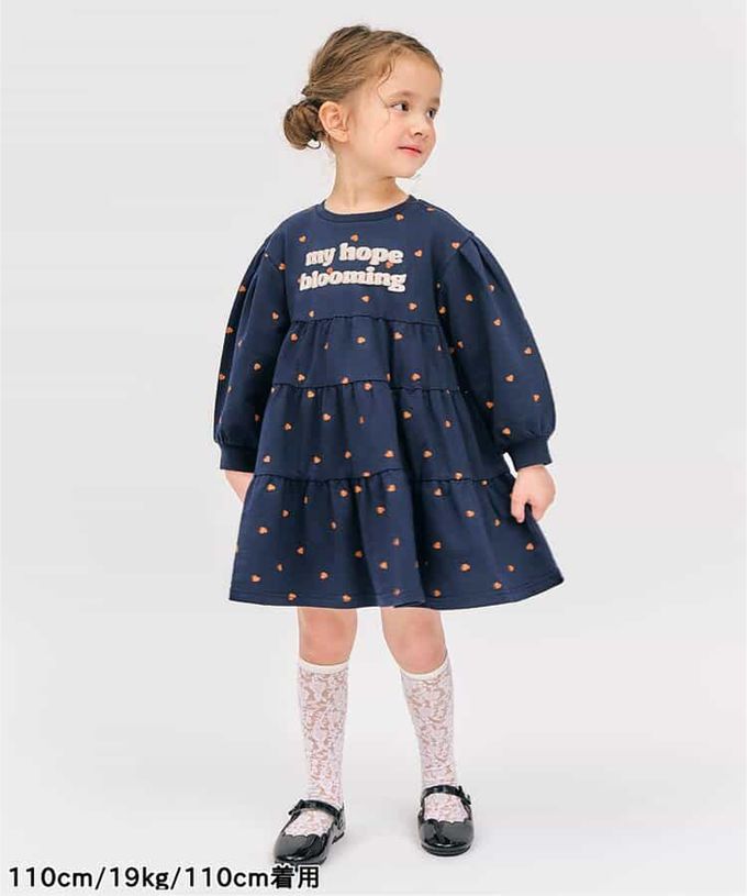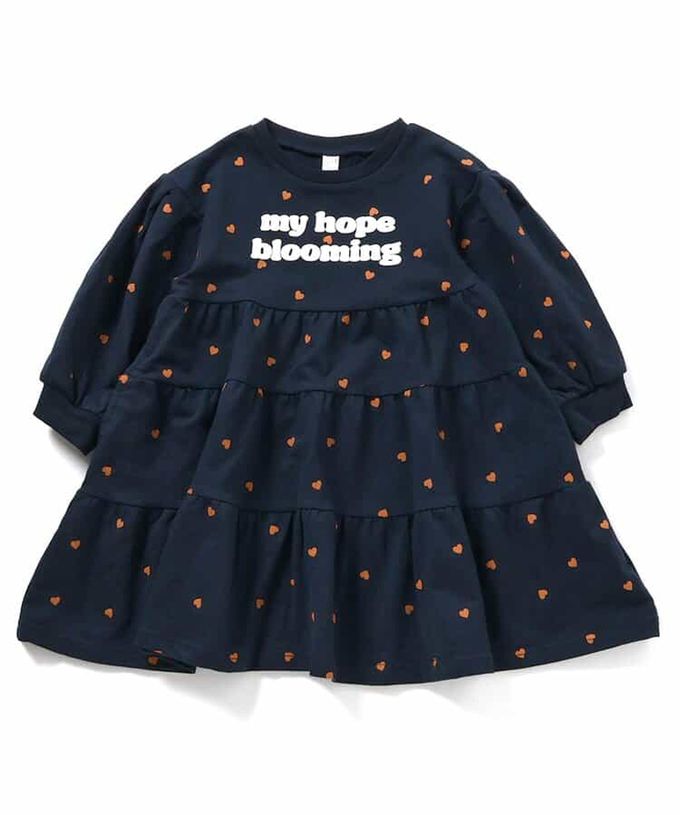日本 apres les cours - 休閒風英文logo分層長袖洋裝-愛心-海軍藍