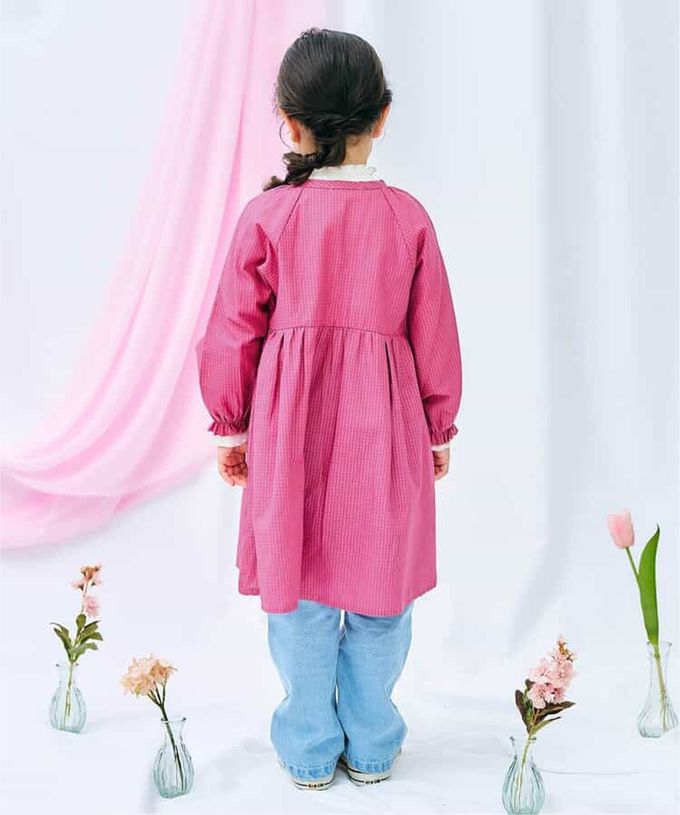 日本 apres les cours - 氣質注目款開襟圓領長袖洋裝-莓果紅