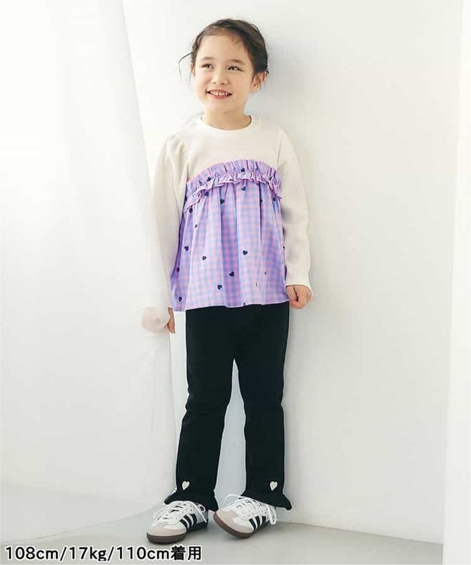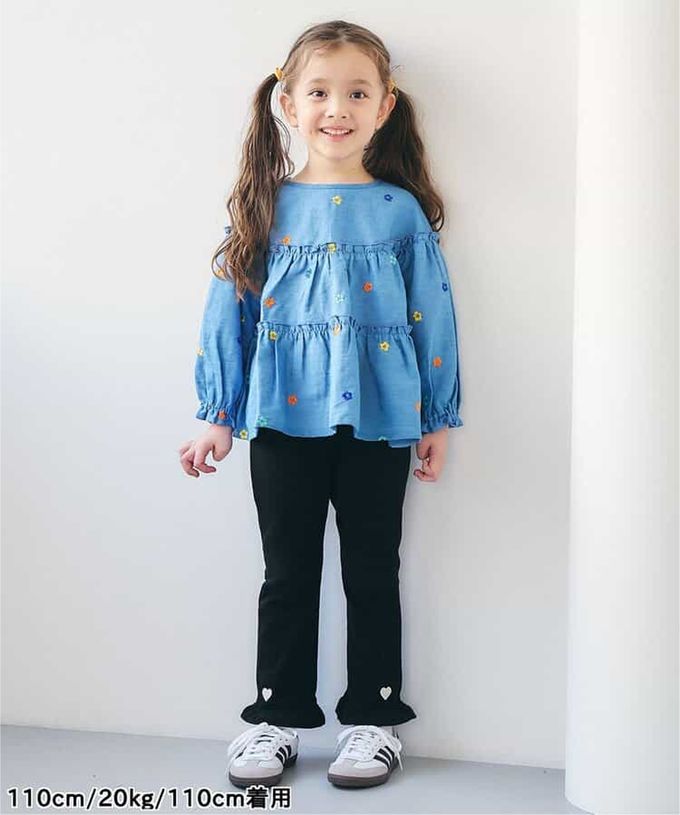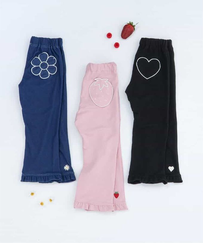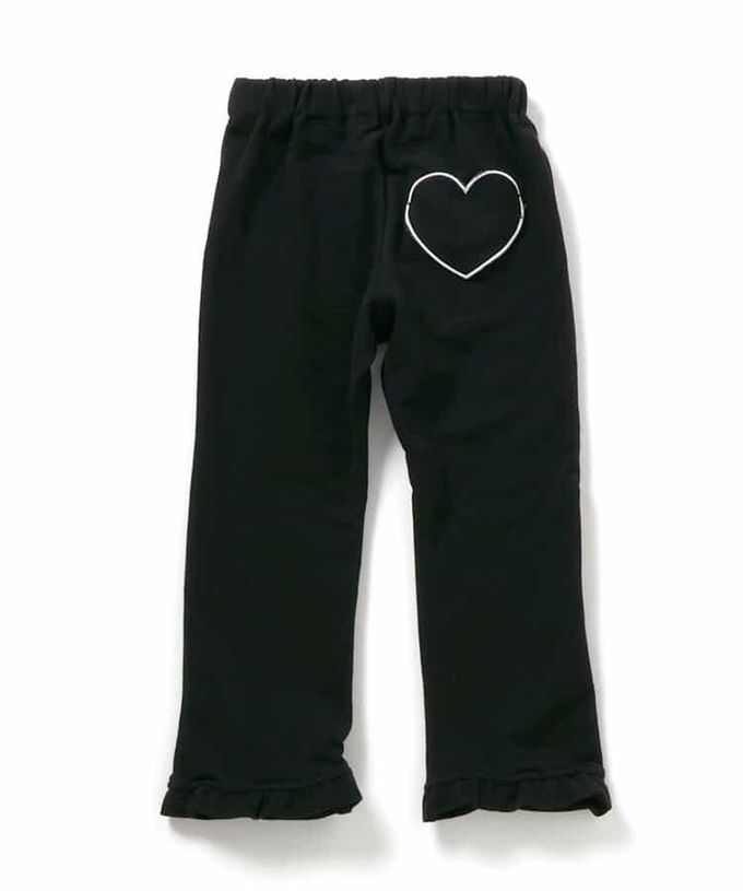 日本 apres les cours - 可愛刺繡下擺荷葉合身長褲-愛心-黑