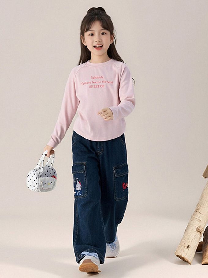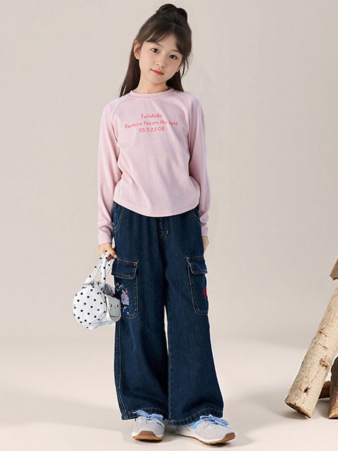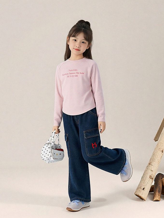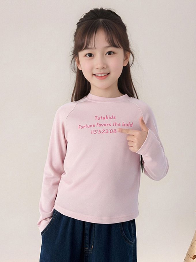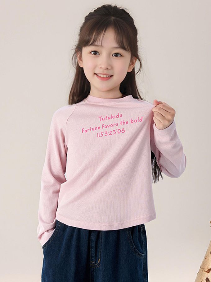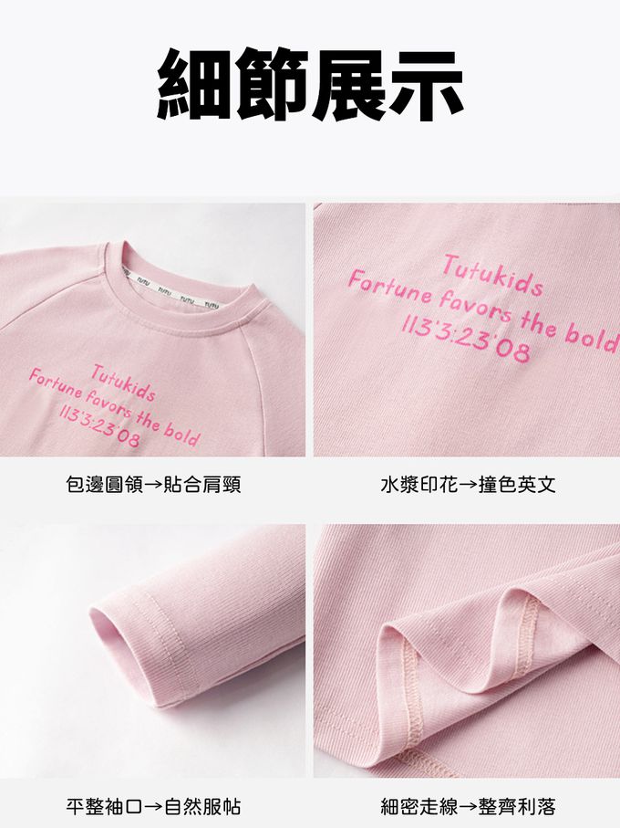 彈性舒適天絲長袖上衣-撞色英文-粉色