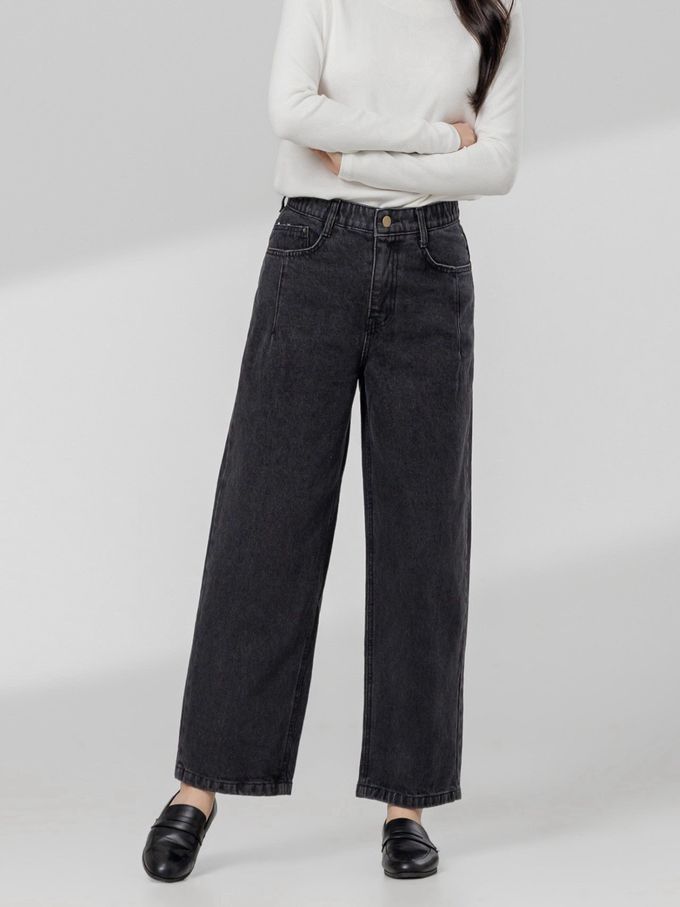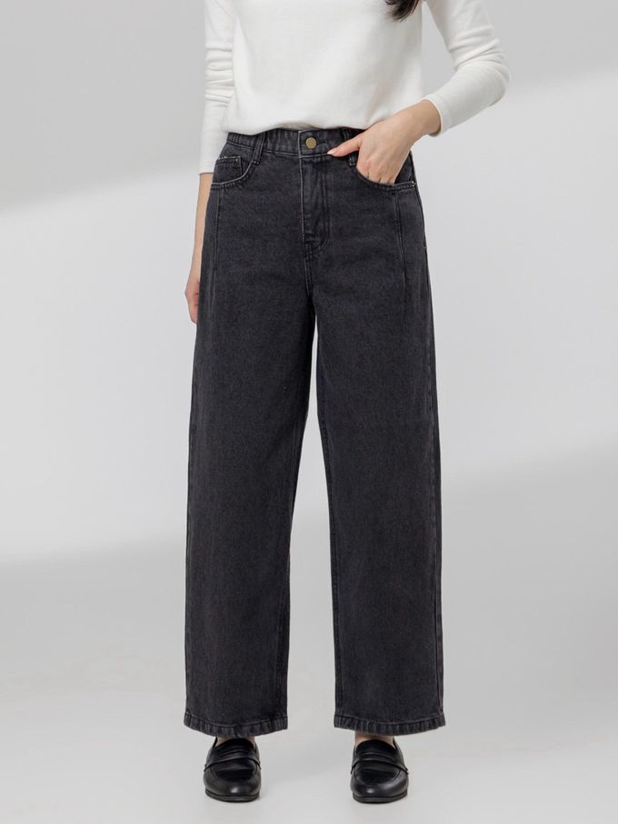 韓國女裝連線 - EDITION 彈性腰寬鬆哈倫丹寧褲-黑