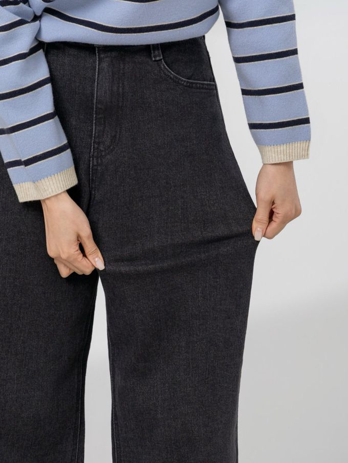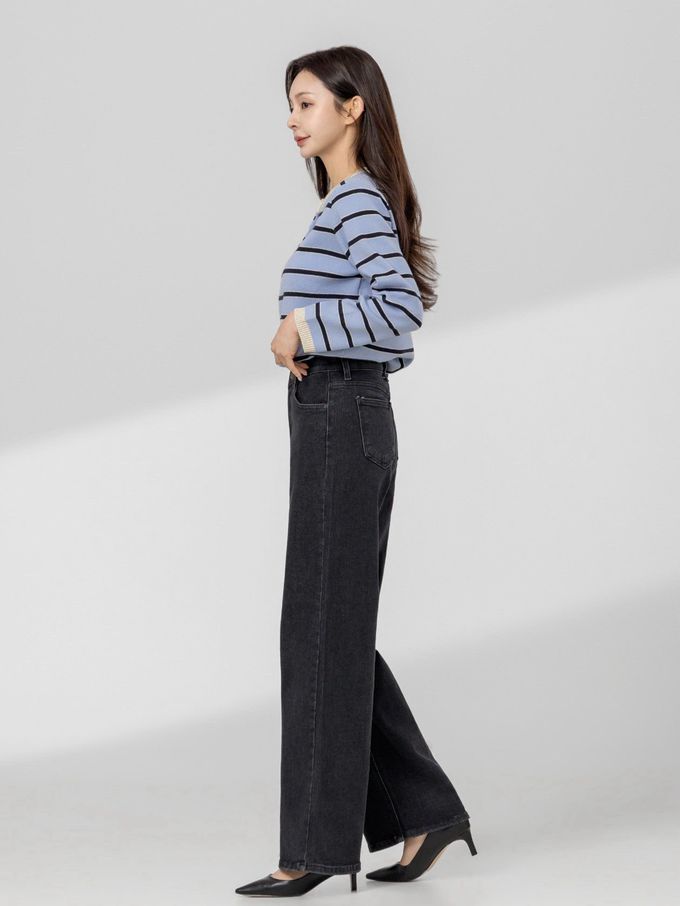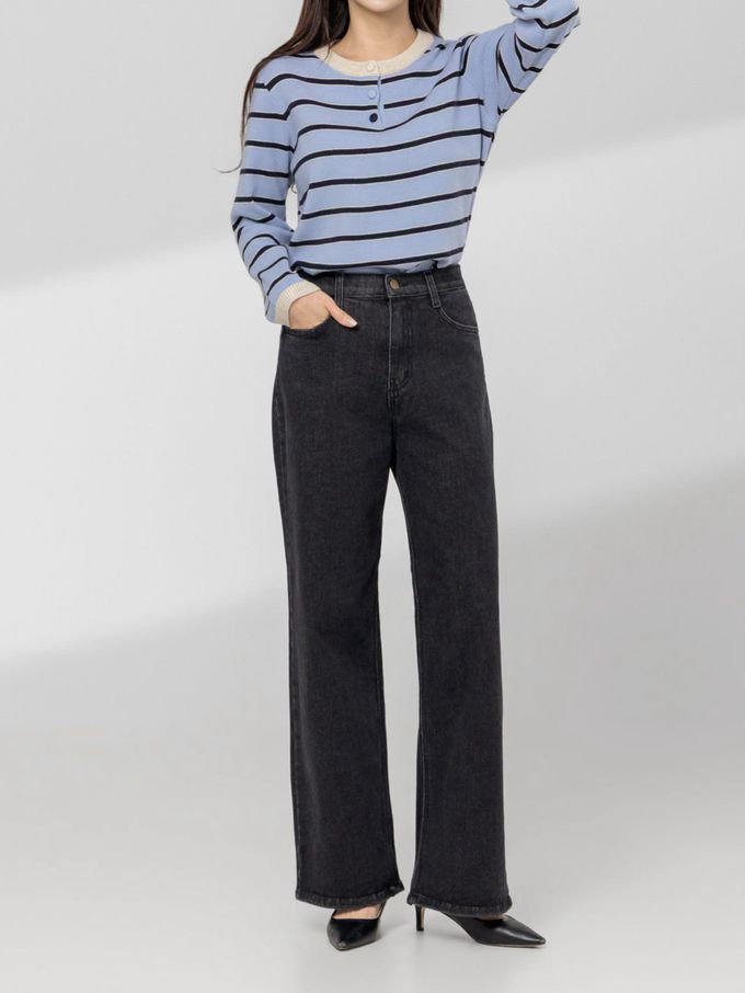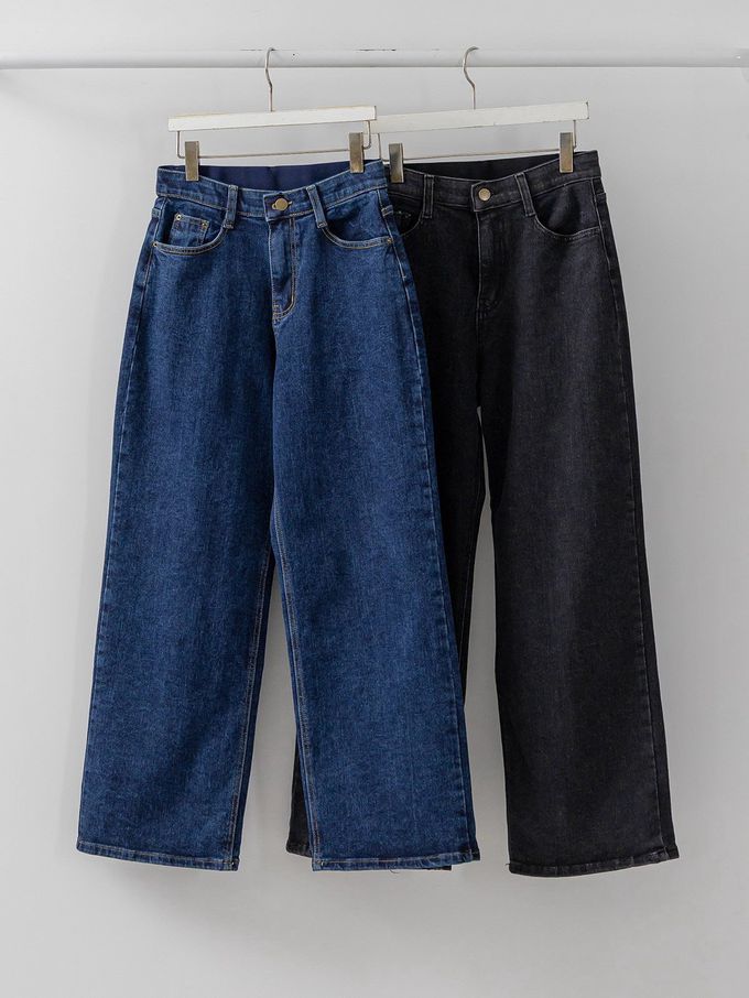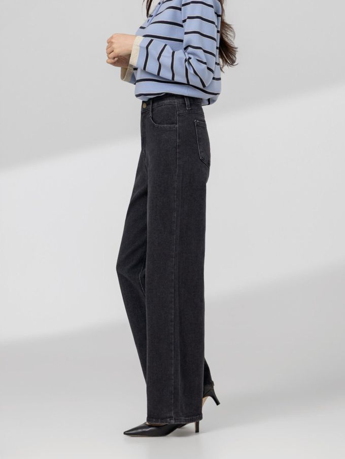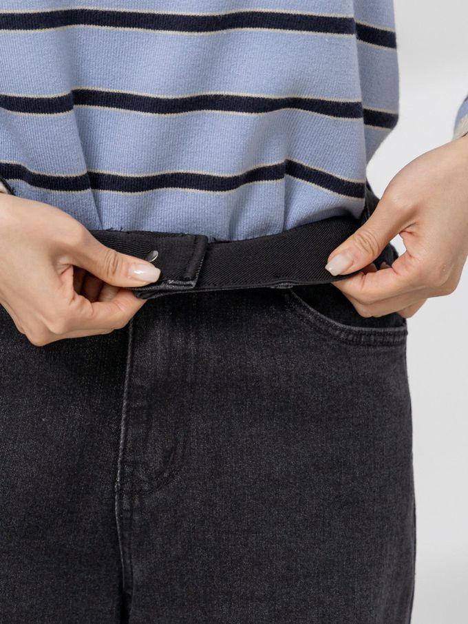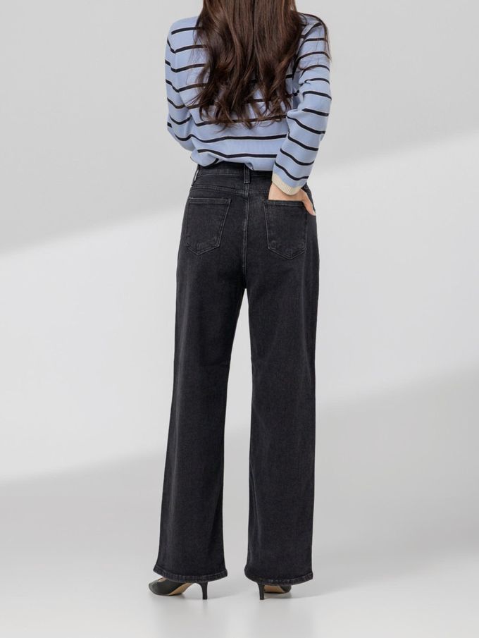 韓國女裝連線 - EDITION 彈性腰彈力寬鬆直腿丹寧褲-黑