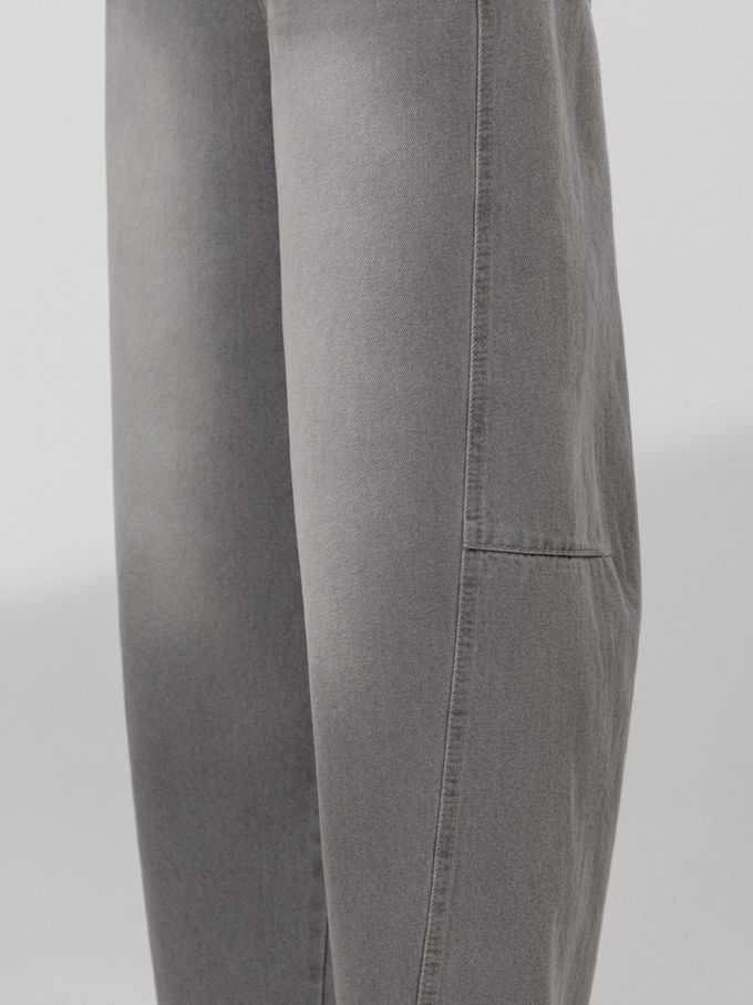 韓國女裝連線 - EDITION 彈性腰縫線拼接顯瘦丹寧哈倫褲-淺灰