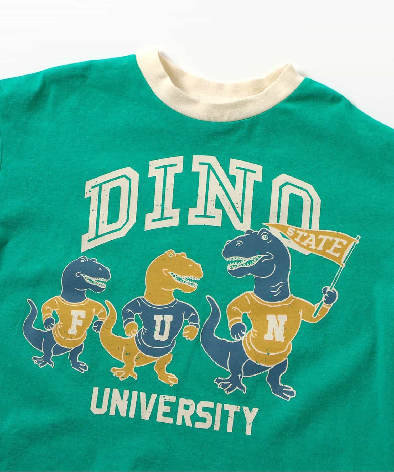 日本 BREEZE - 復古風動物好朋友長袖上衣-恐龍排隊-綠
