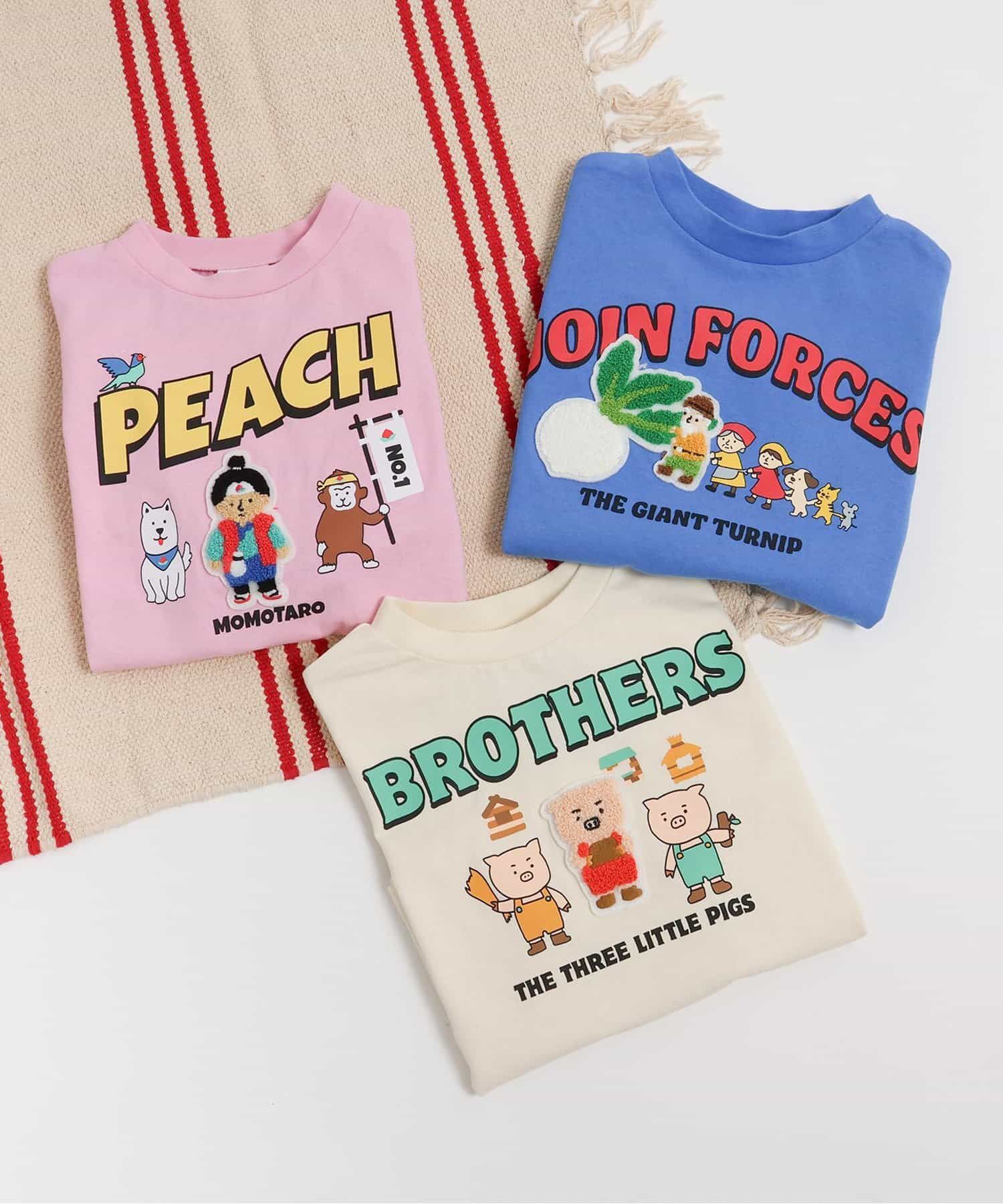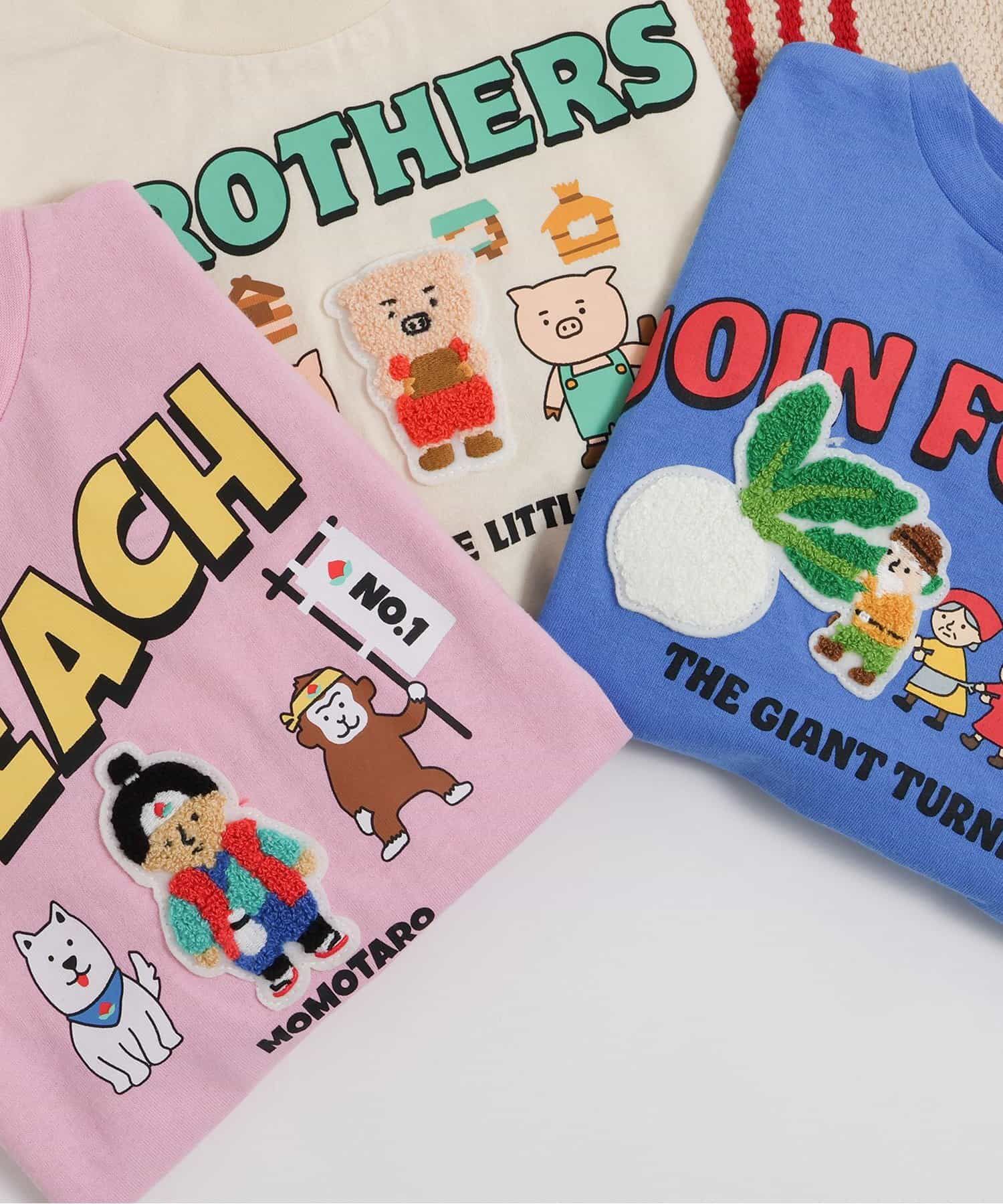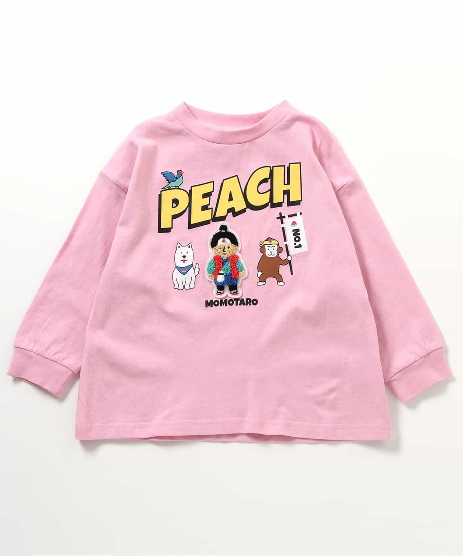 日本 BREEZE - 俏皮童話故事刺繡長袖上衣-桃太郎-粉紅
