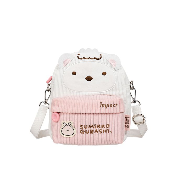 品名:角落小夥伴-白熊 燈芯絨兩用小側包-白配粉 IMQSG011WT