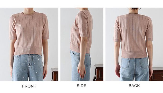 日本 BLUE EAST - 羅紋彈性薄針織五分袖上衣-淺卡其
