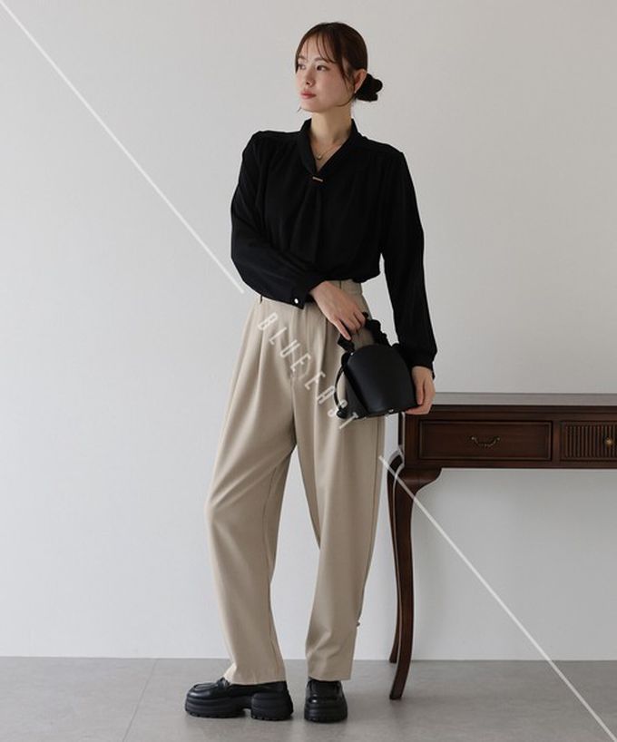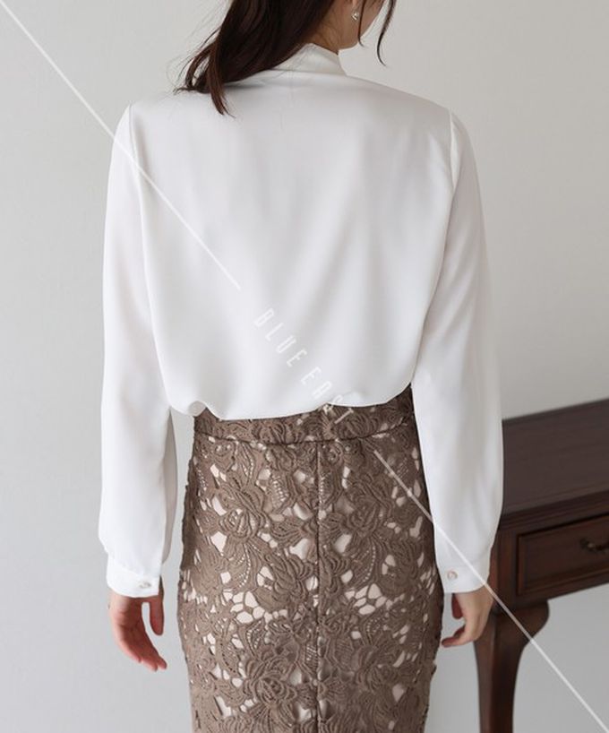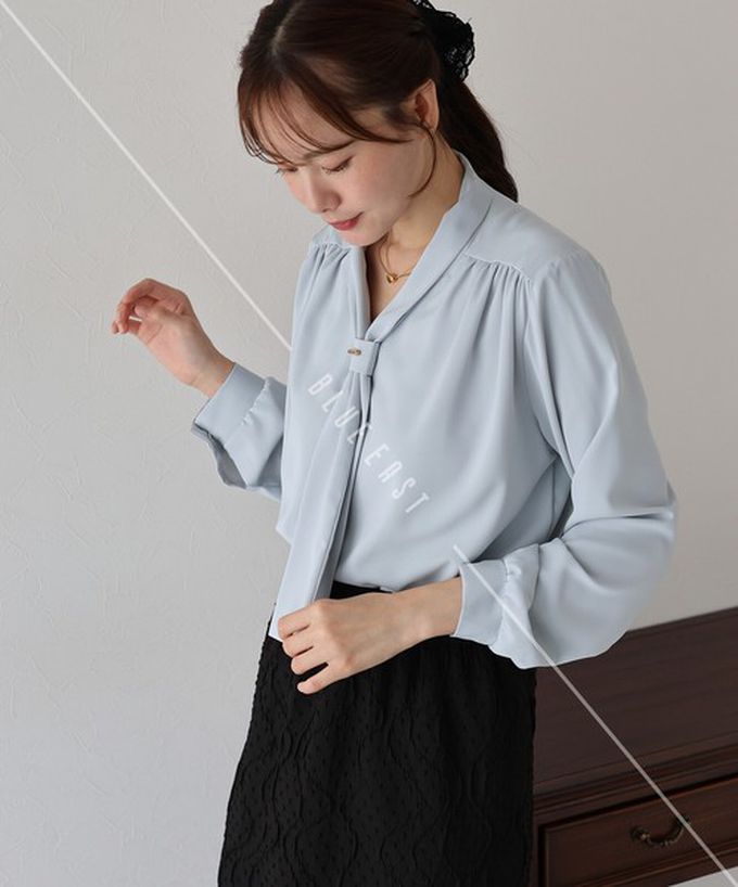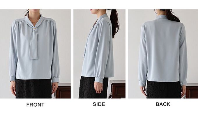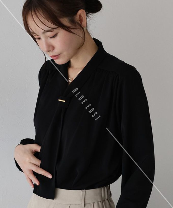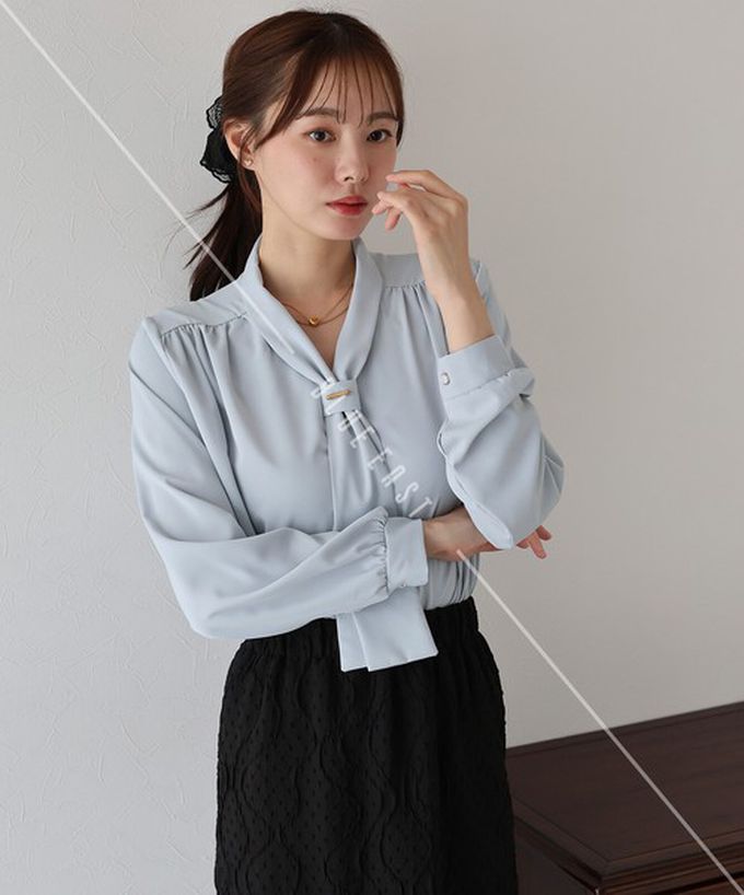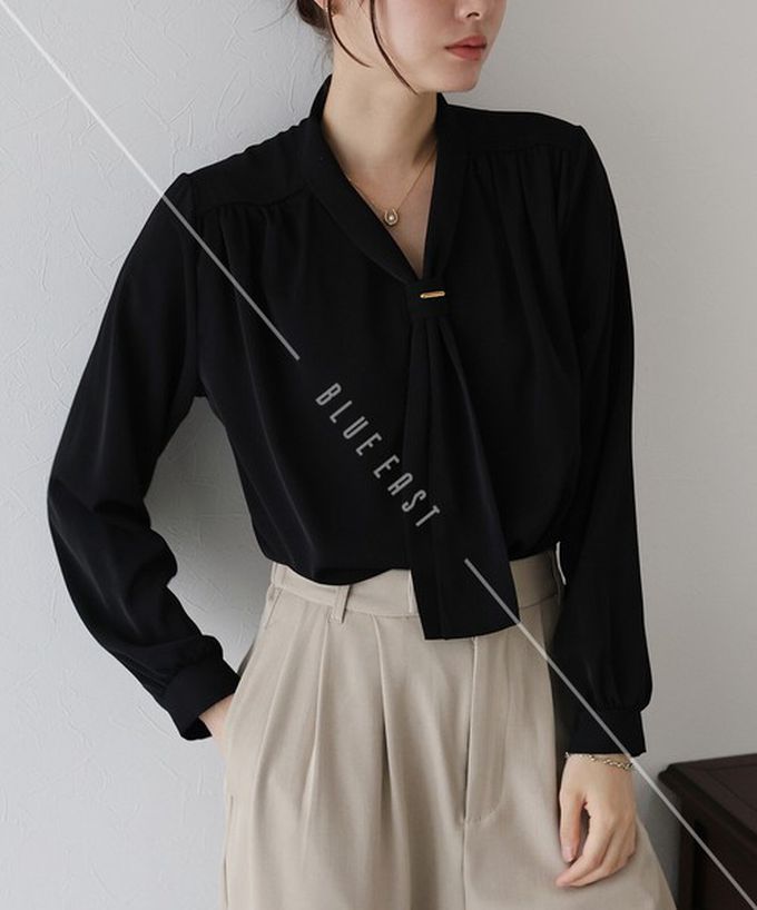 • 品名:韓國製 氣質魅力金屬裝飾領結長袖上衣