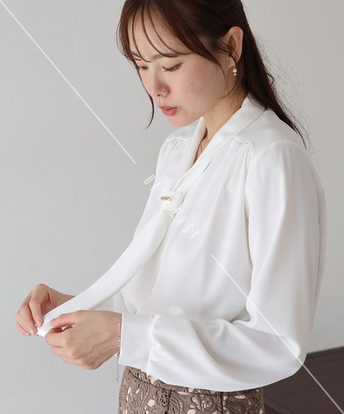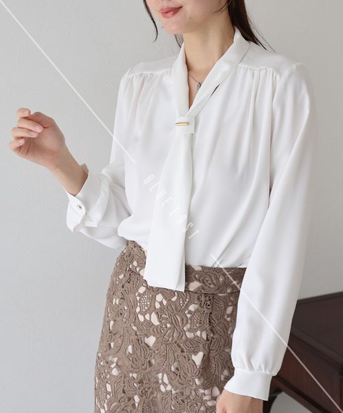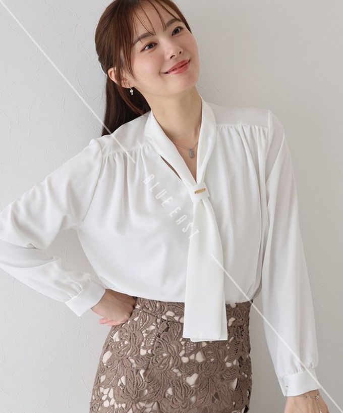日本 BLUE EAST - 韓國製 氣質魅力金屬裝飾領結長袖上衣-白 (M)