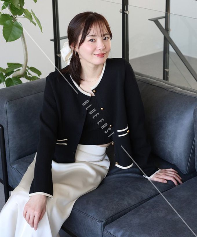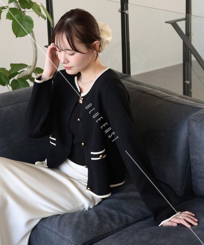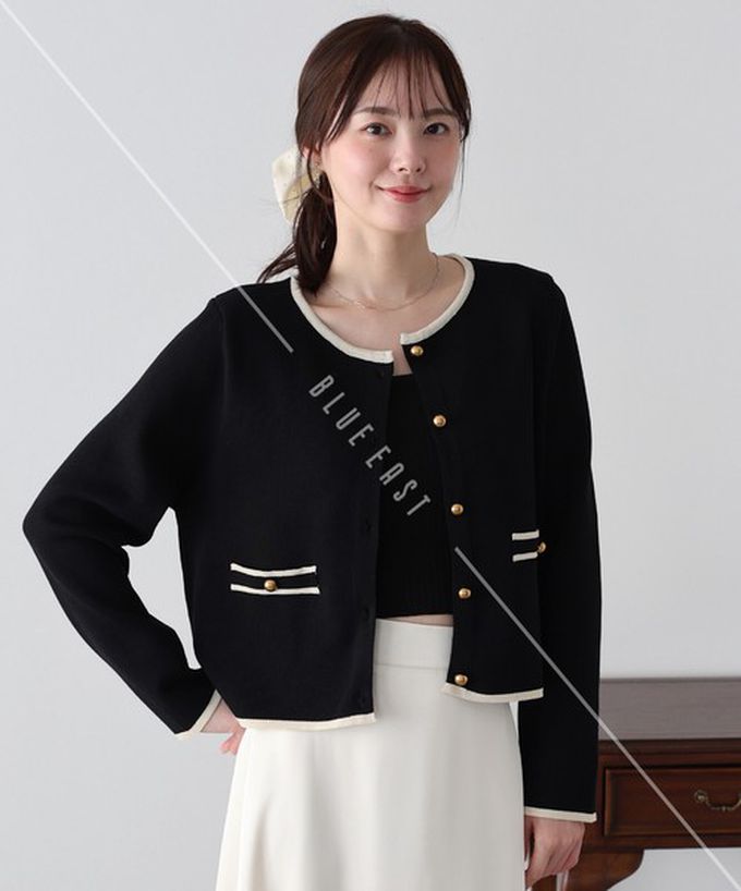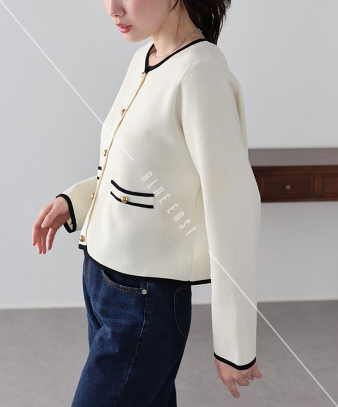 • 品名:法式氣質金扣雙色滾邊開襟衫
