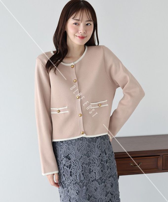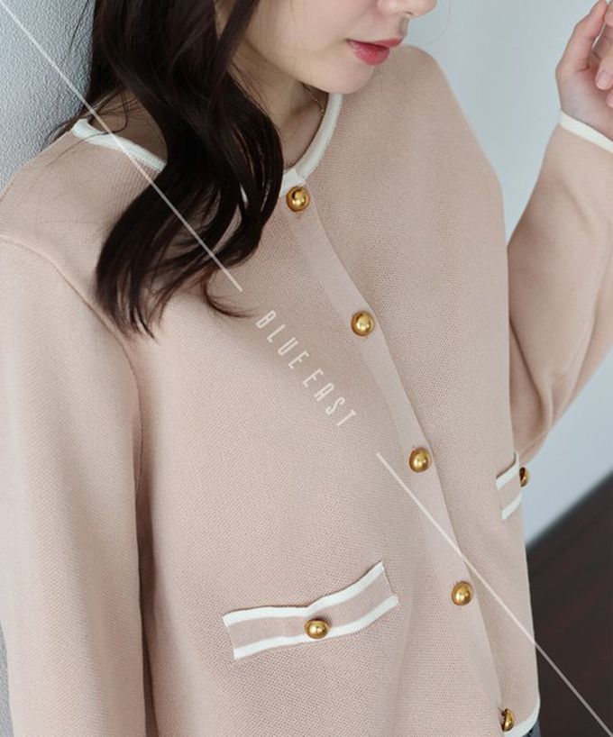 日本 BLUE EAST - 法式氣質金扣雙色滾邊開襟衫-嫩粉紅 (M)