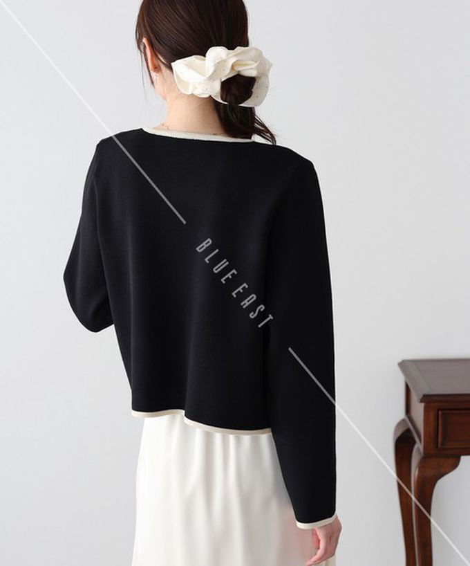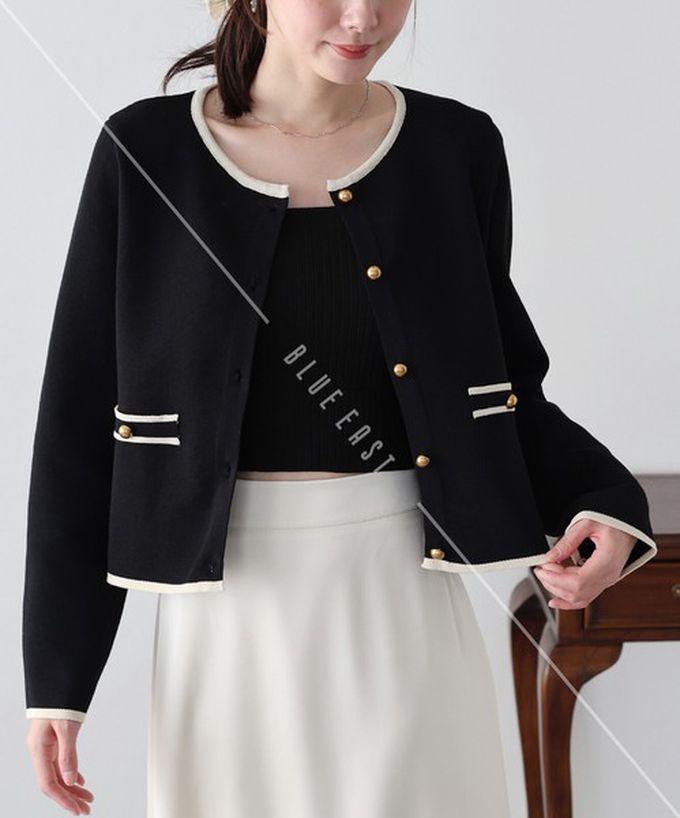 日本 BLUE EAST - 法式氣質金扣雙色滾邊開襟衫-黑 (M)