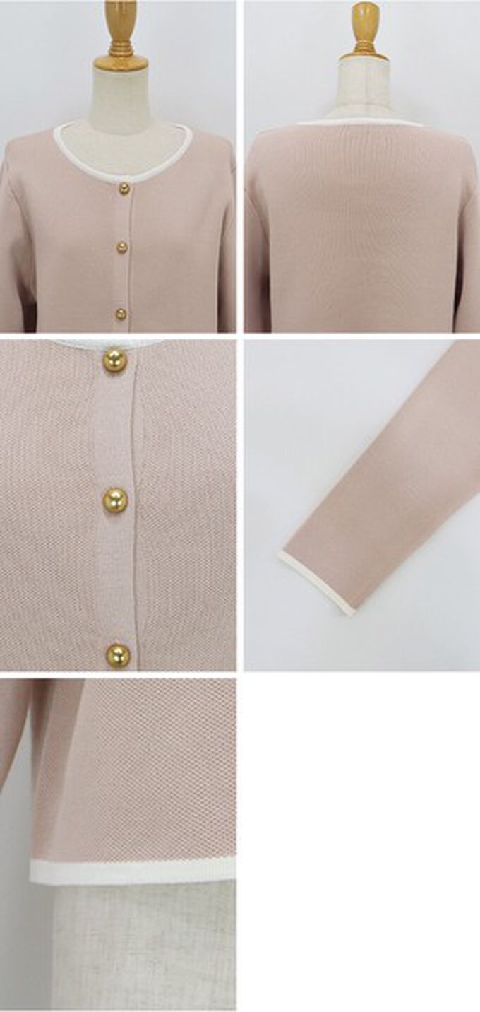 • 品名:法式氣質金扣雙色滾邊開襟衫