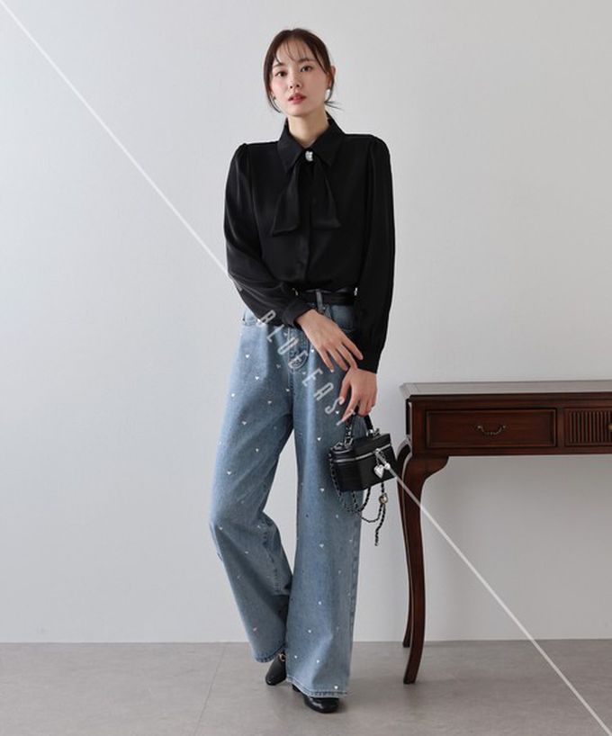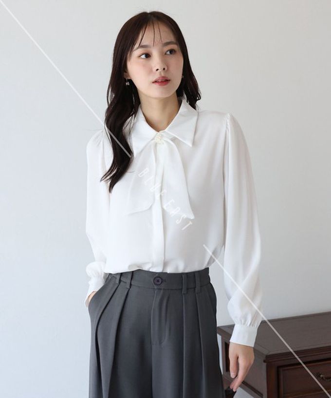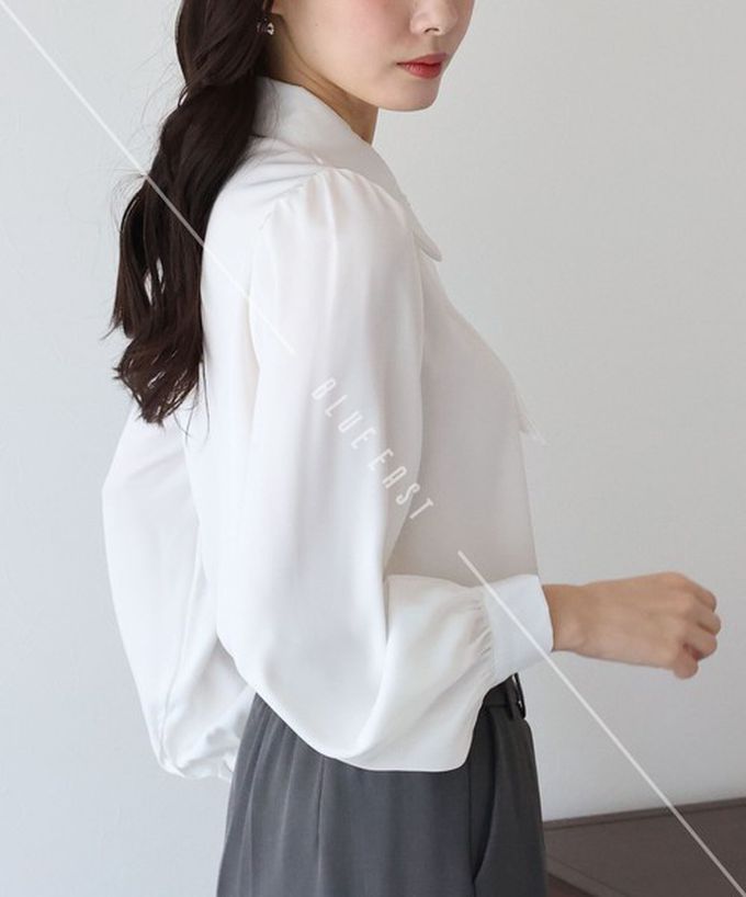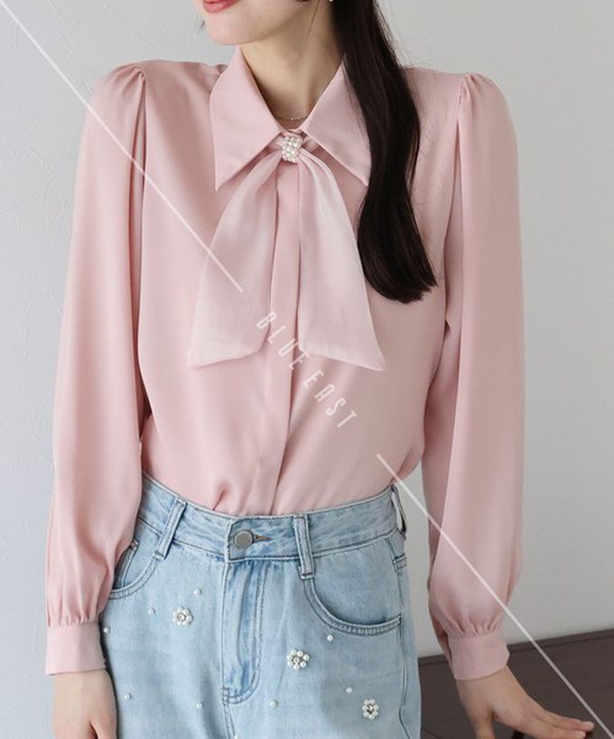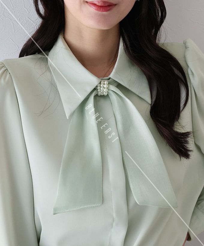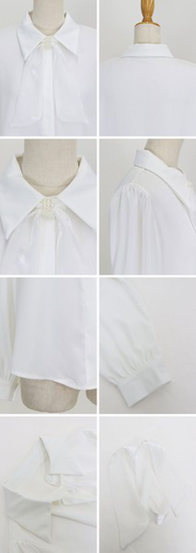 • 品名:華美珍珠墜飾蝴蝶結緞面長袖襯衫