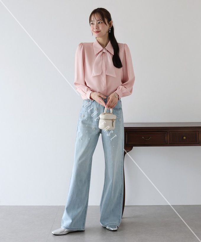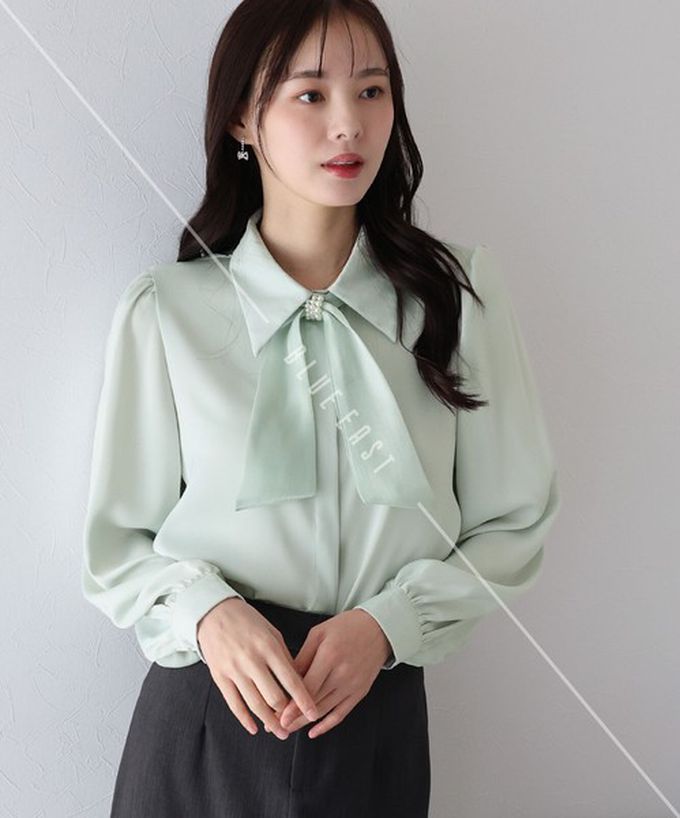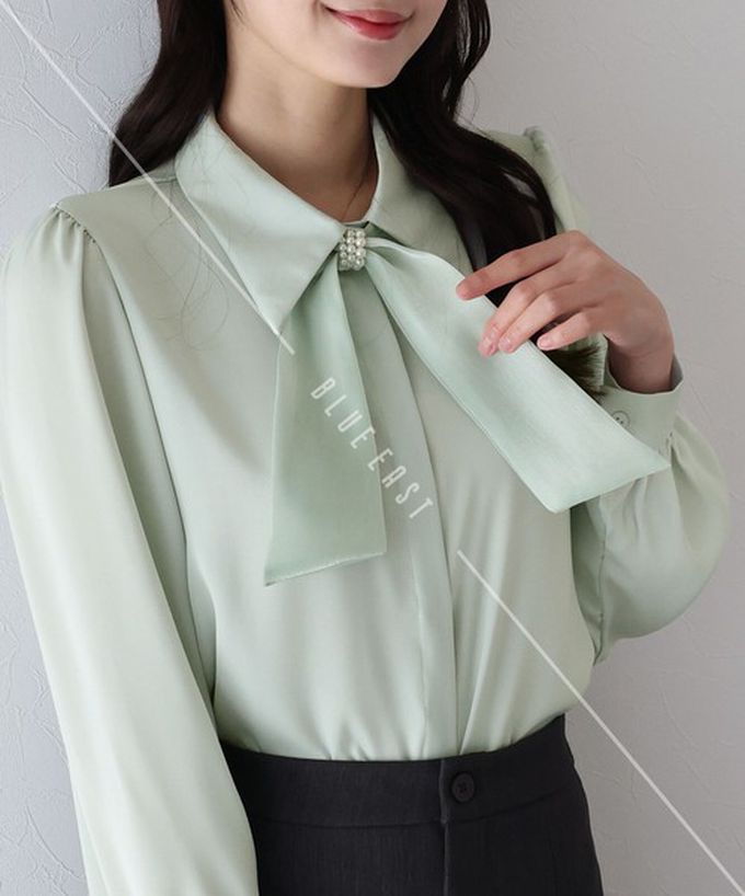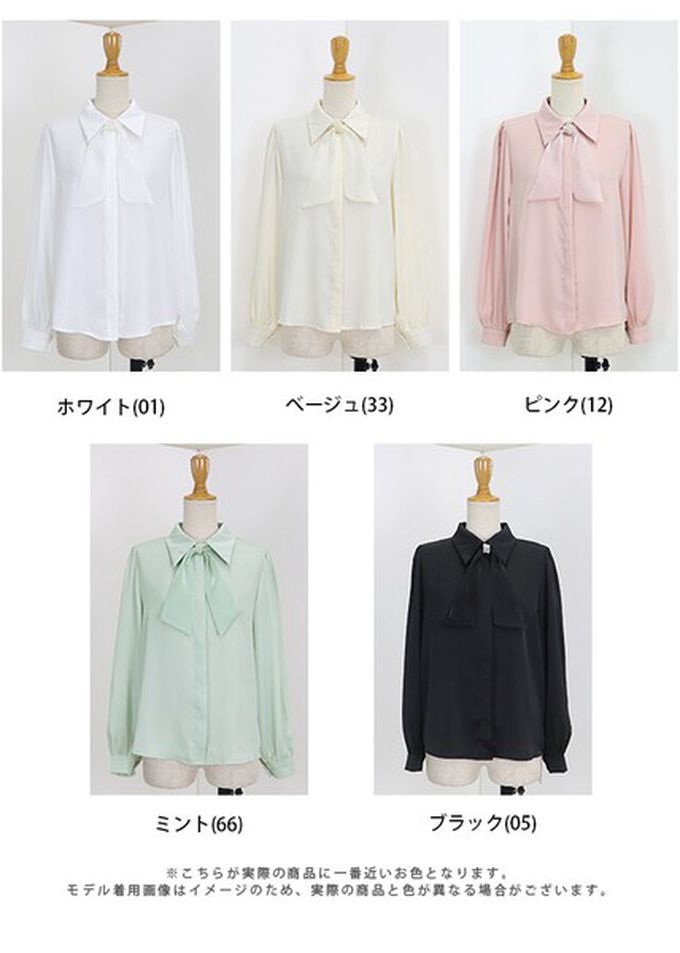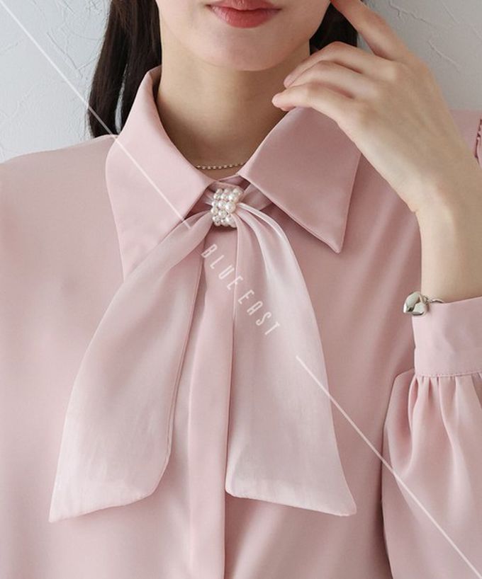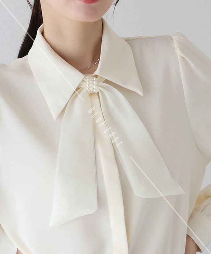 • 品名:華美珍珠墜飾蝴蝶結緞面長袖襯衫