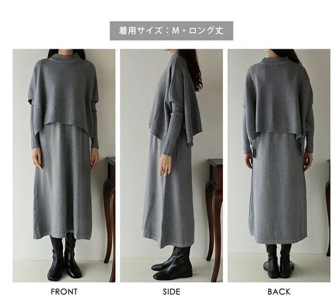 • 品名:[經典款]氣質針織斗篷長袖洋裝2件組(毛絨款)
